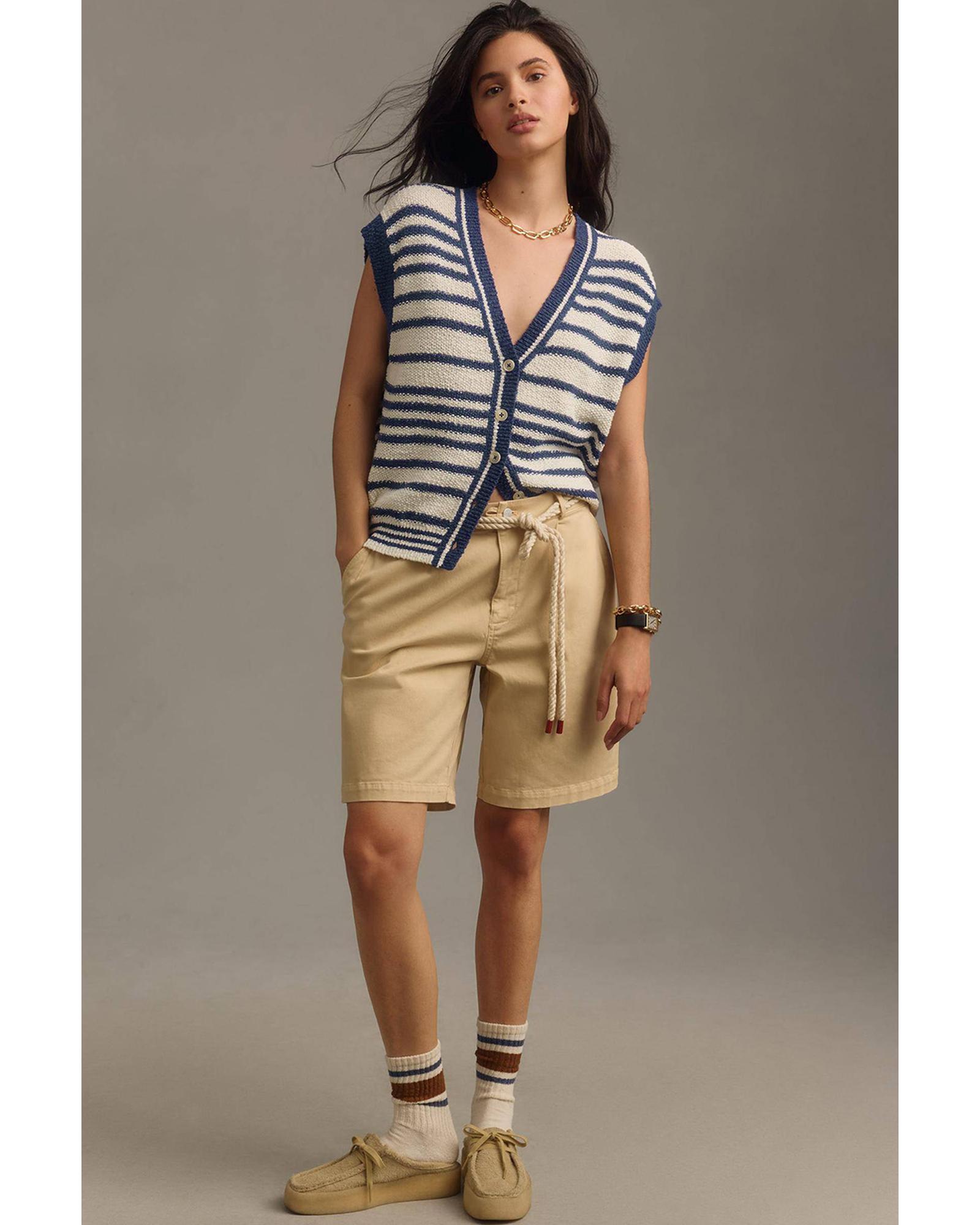 - Blue Stripe Loose Buttoned V Neck Sweater Vest