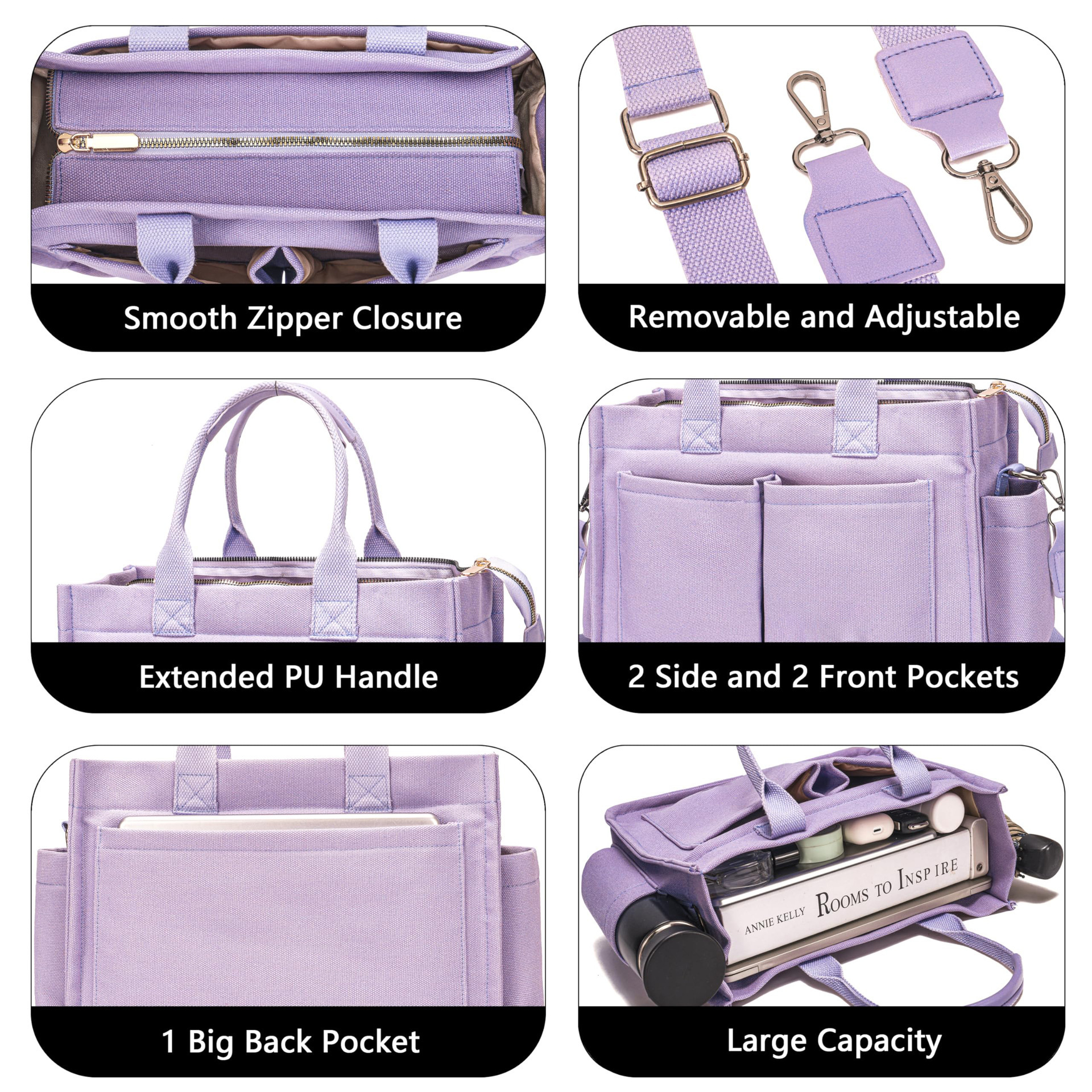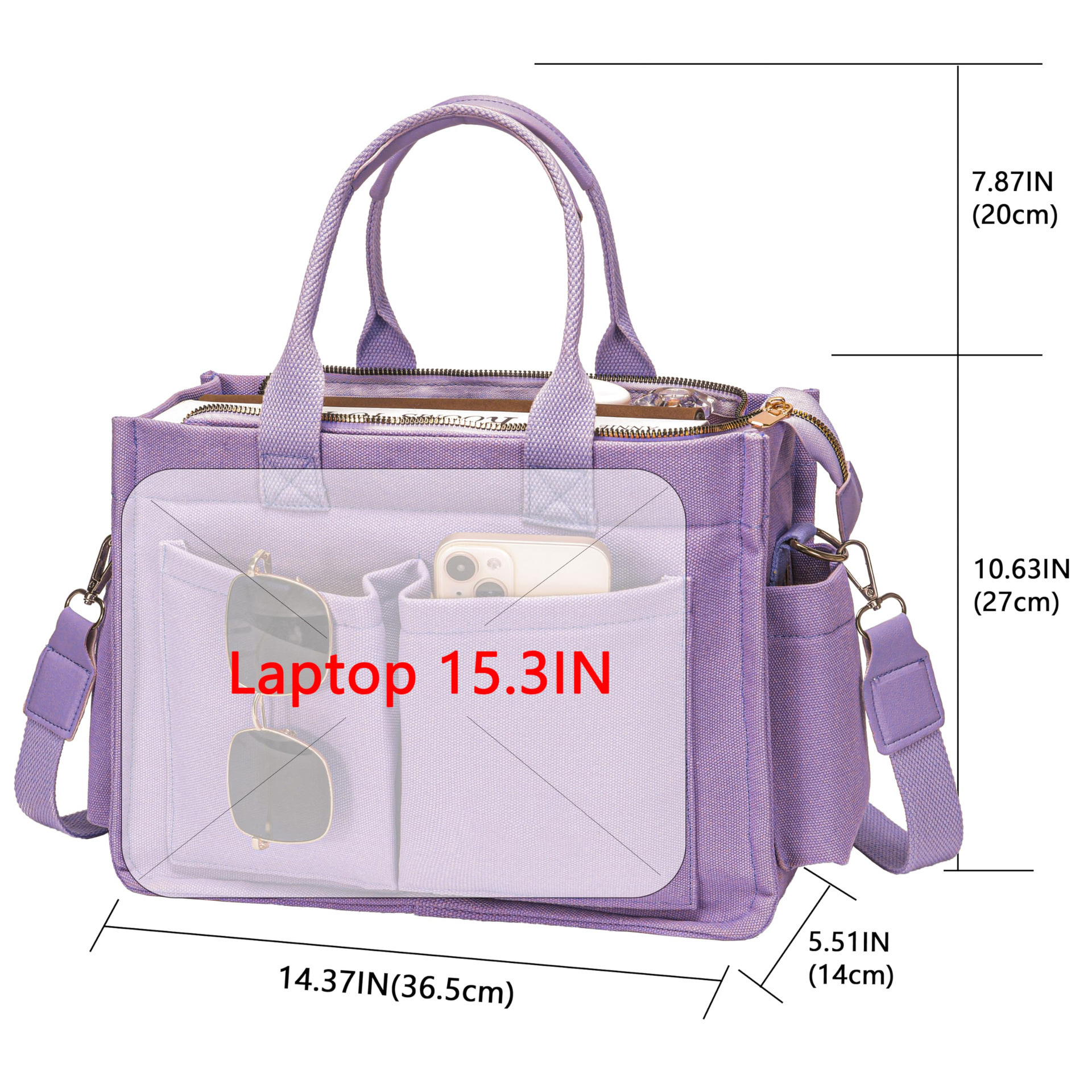Stylish Women’s Large Canvas Tote Bag – 15.3in Laptop Mommy Bag with Crossbody Strap