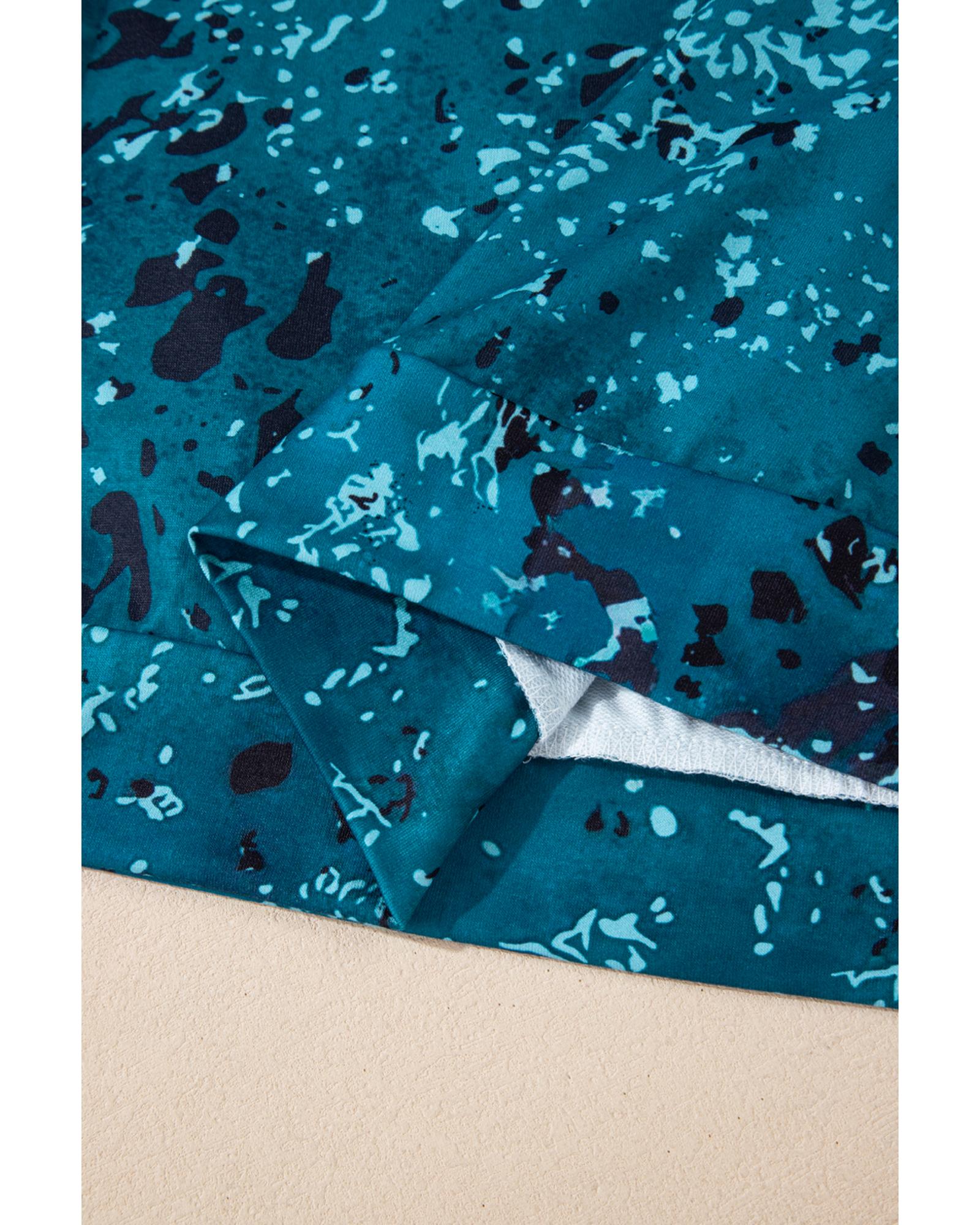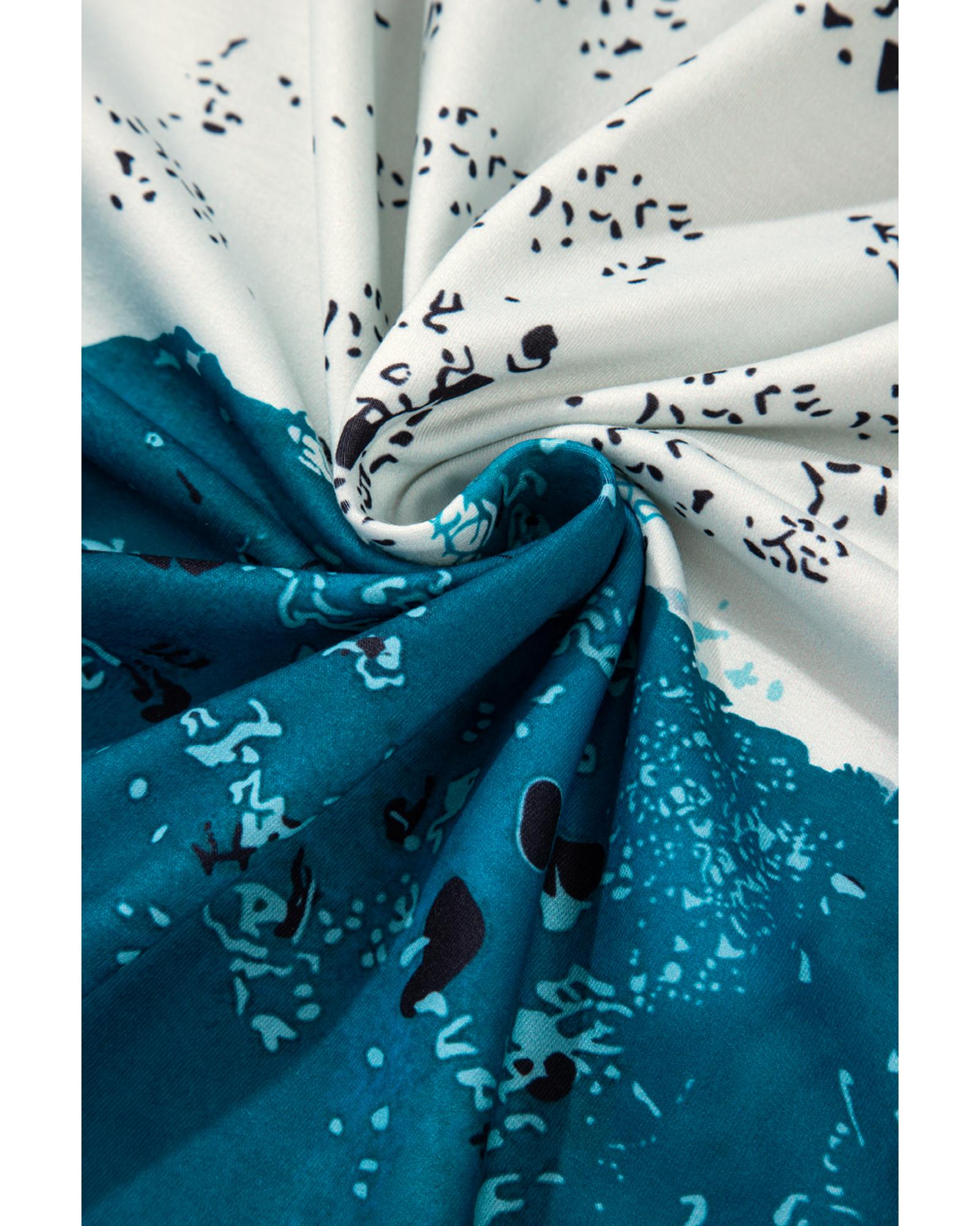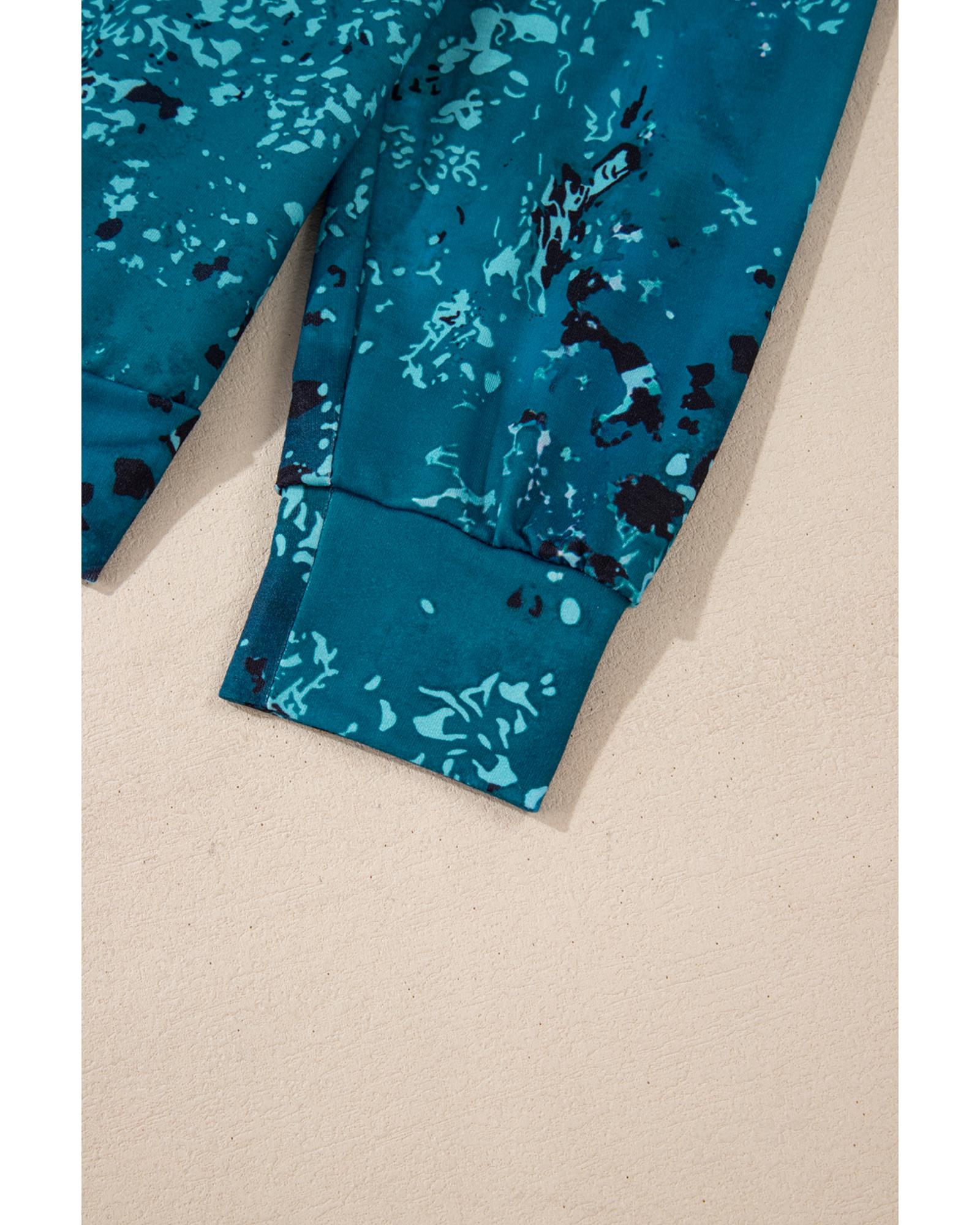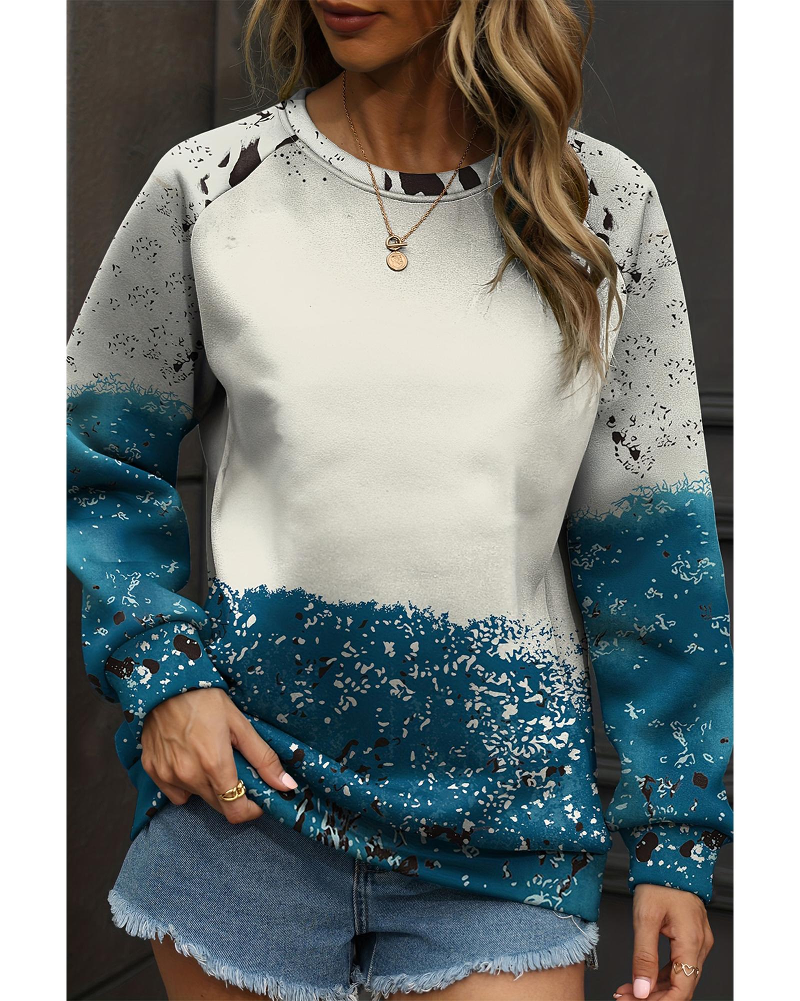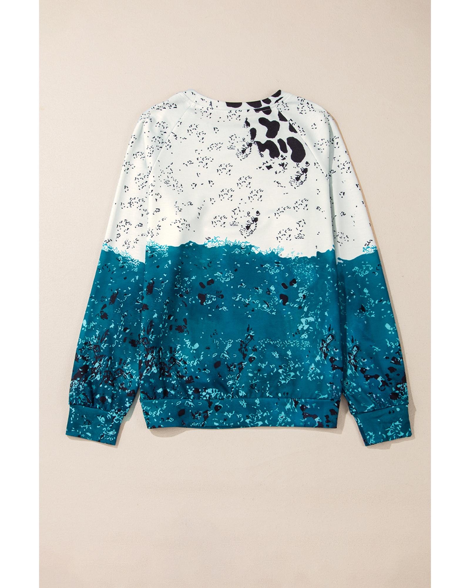 Blue Tie Dye Cow Color Block Pullover Sweatshirt – L