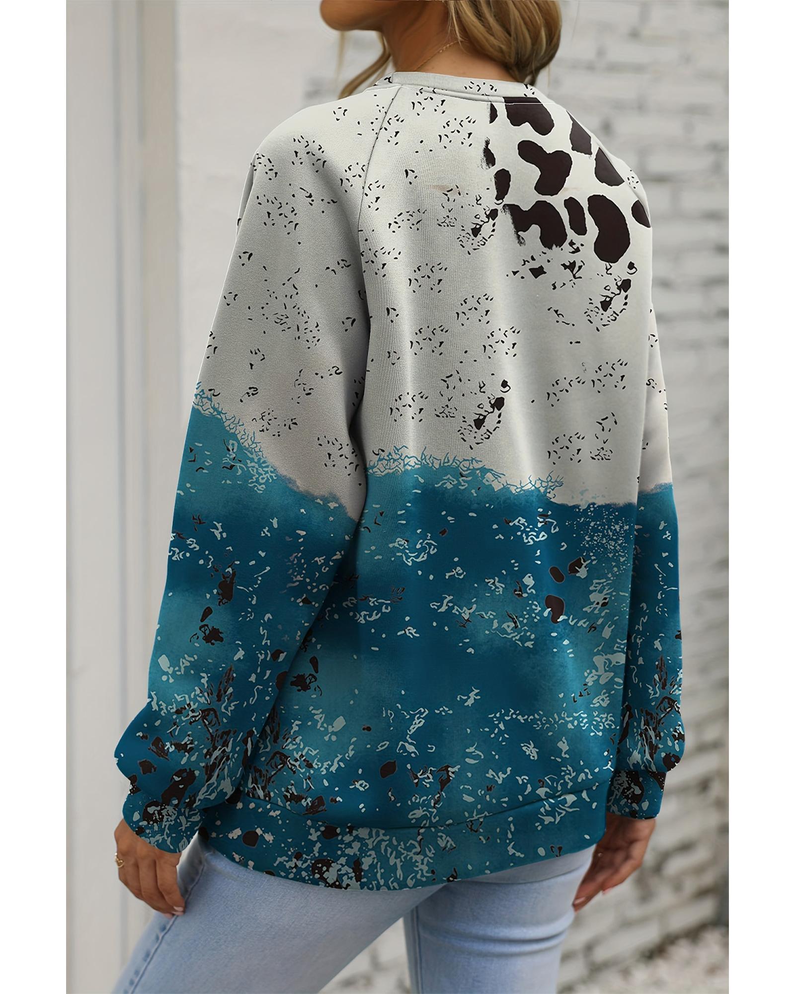 Blue Tie Dye Cow Color Block Pullover Sweatshirt – M