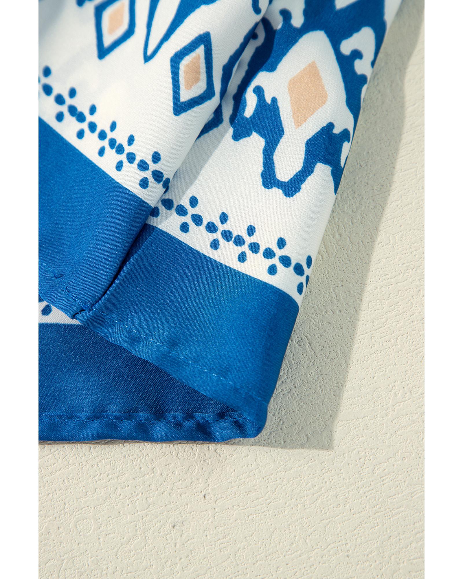Blue Tribal Geometric Print 3/4 Sleeve Flowy Fit Blouse – XL