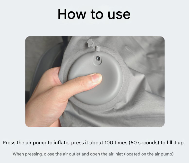 • Adjustable Firmness: Easily control the level of support by adjusting the amount of air. Inflate fully for firm support or slightly less for a softer cushion.