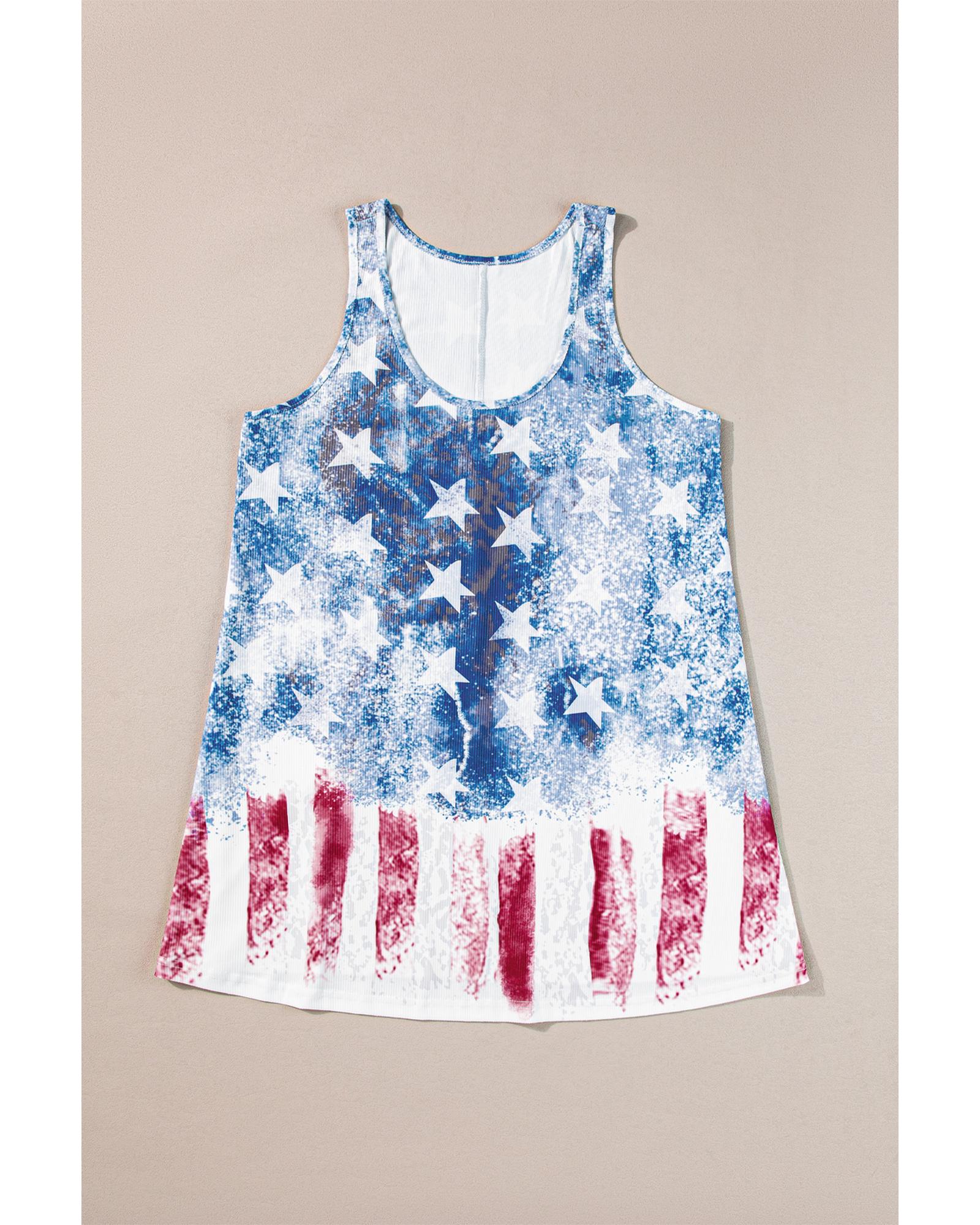 Blue Vintage Washed Flag Print Shift Tank Top – M