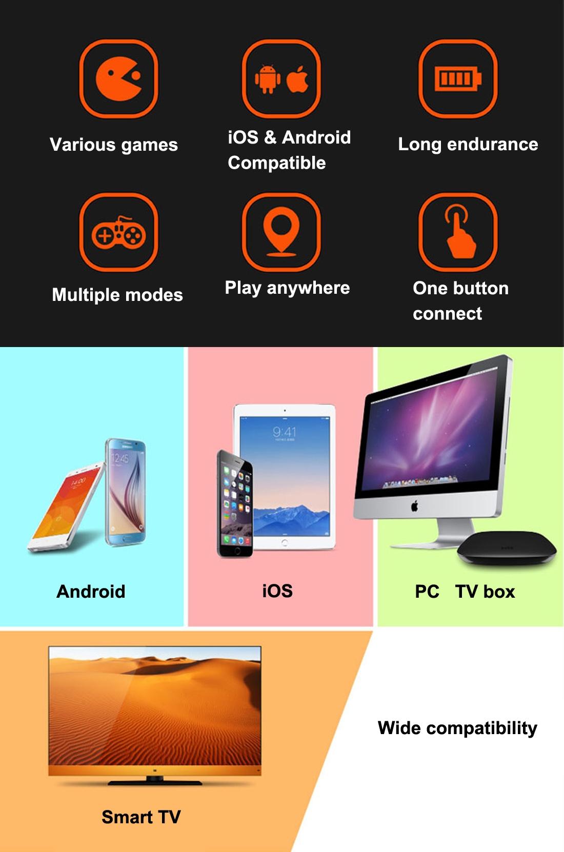 • Automatic recognition with iOS or Android (iOS supports Newgame, iCade game)