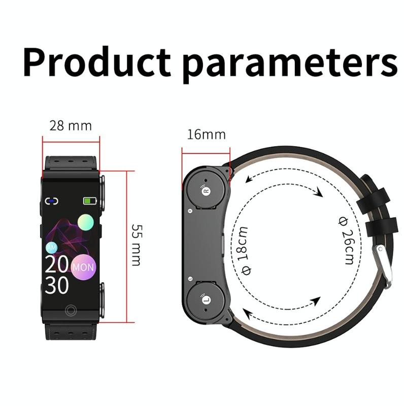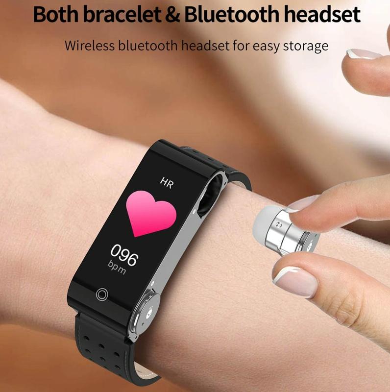 Bluetooth Headset Bracelet With Hr / Bp Monitoring & Temp. Measurement – Black