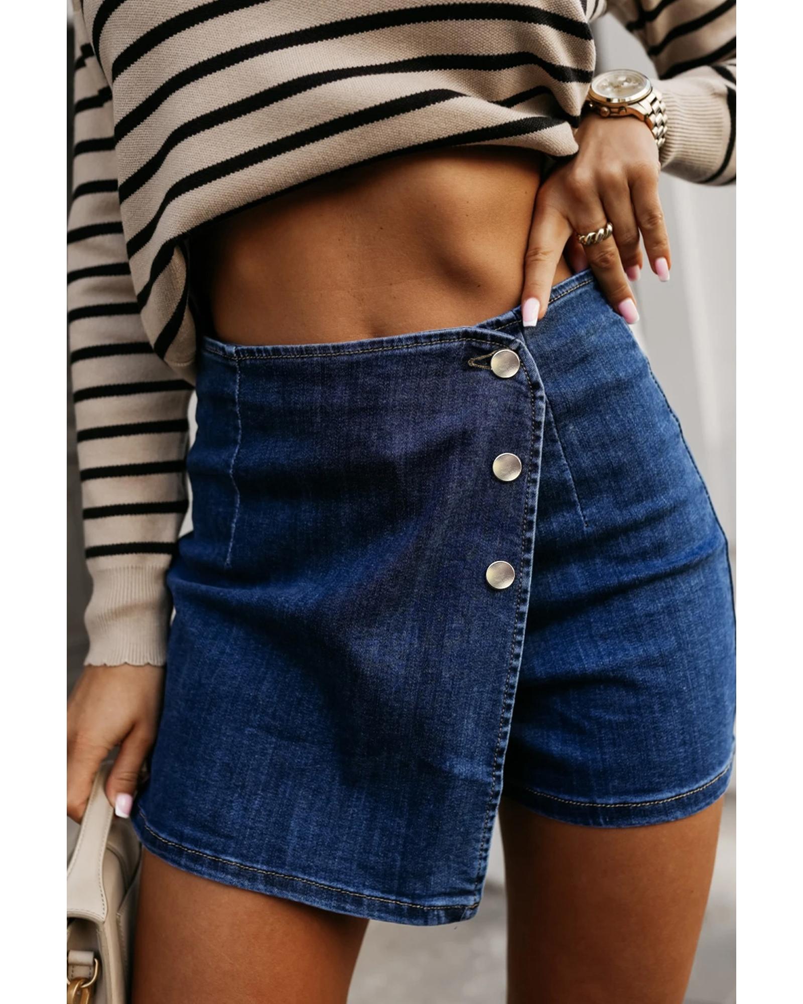 Bluing Asymmetric Wrapped Buttoned High Waist Denim Shorts – 12 US