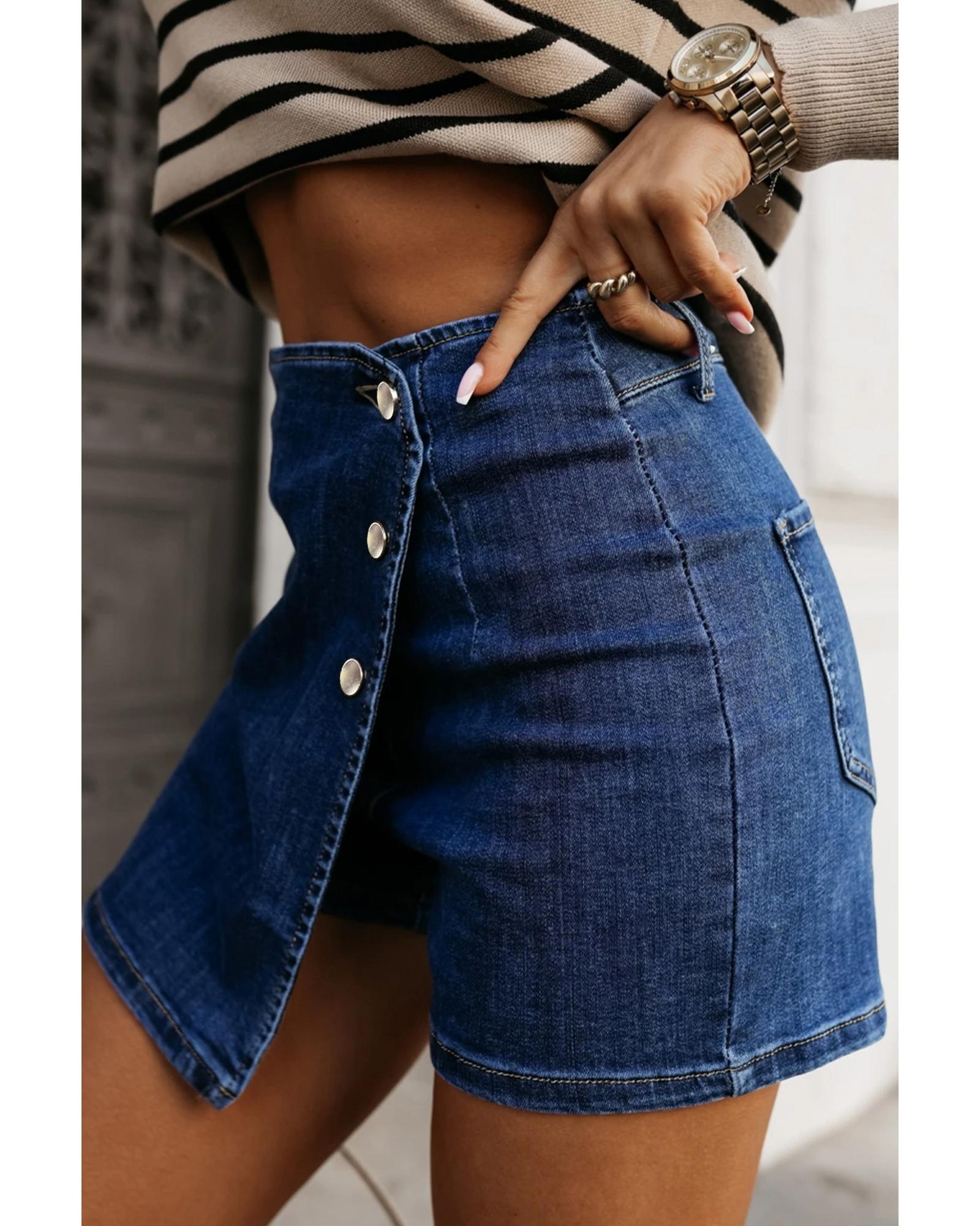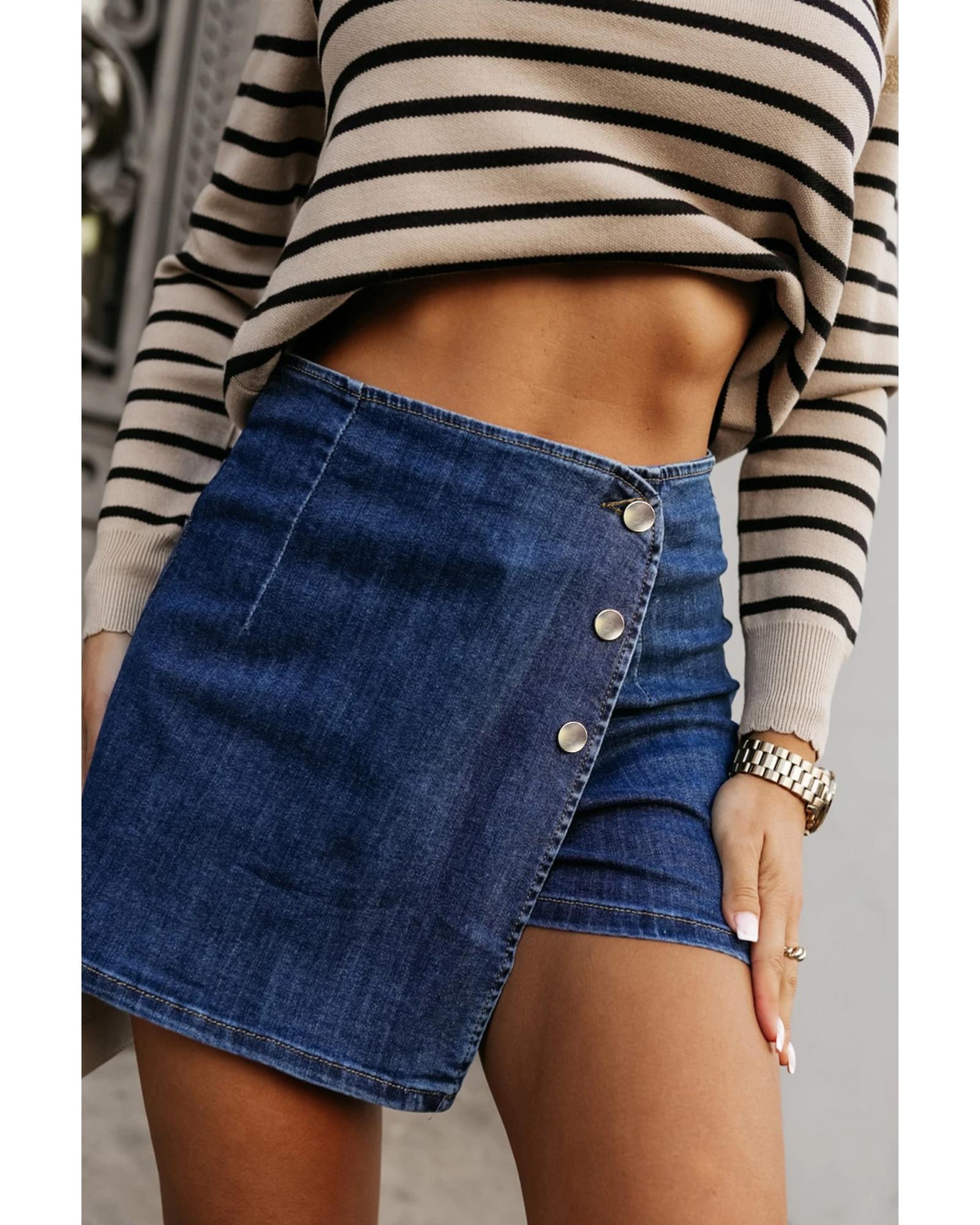 Bluing Asymmetric Wrapped Buttoned High Waist Denim Shorts – 14 US