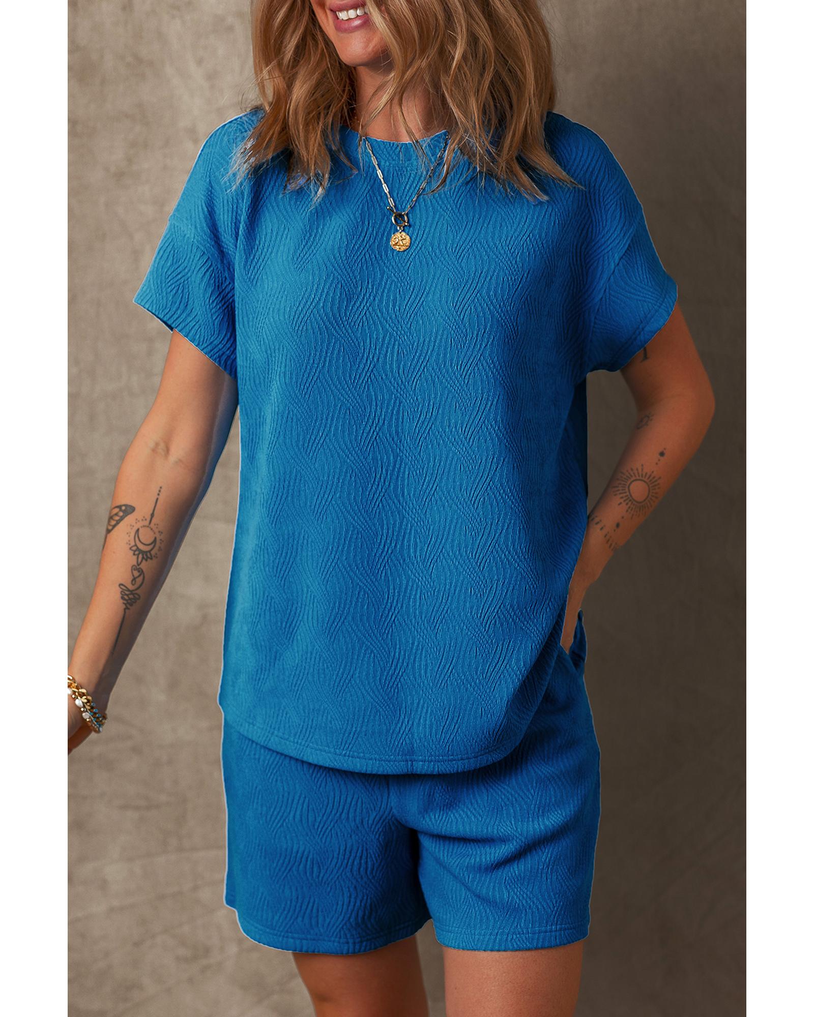 Sky Blue Corded Collared Half Zip Tank Top Two Piece Shorts Set - XL