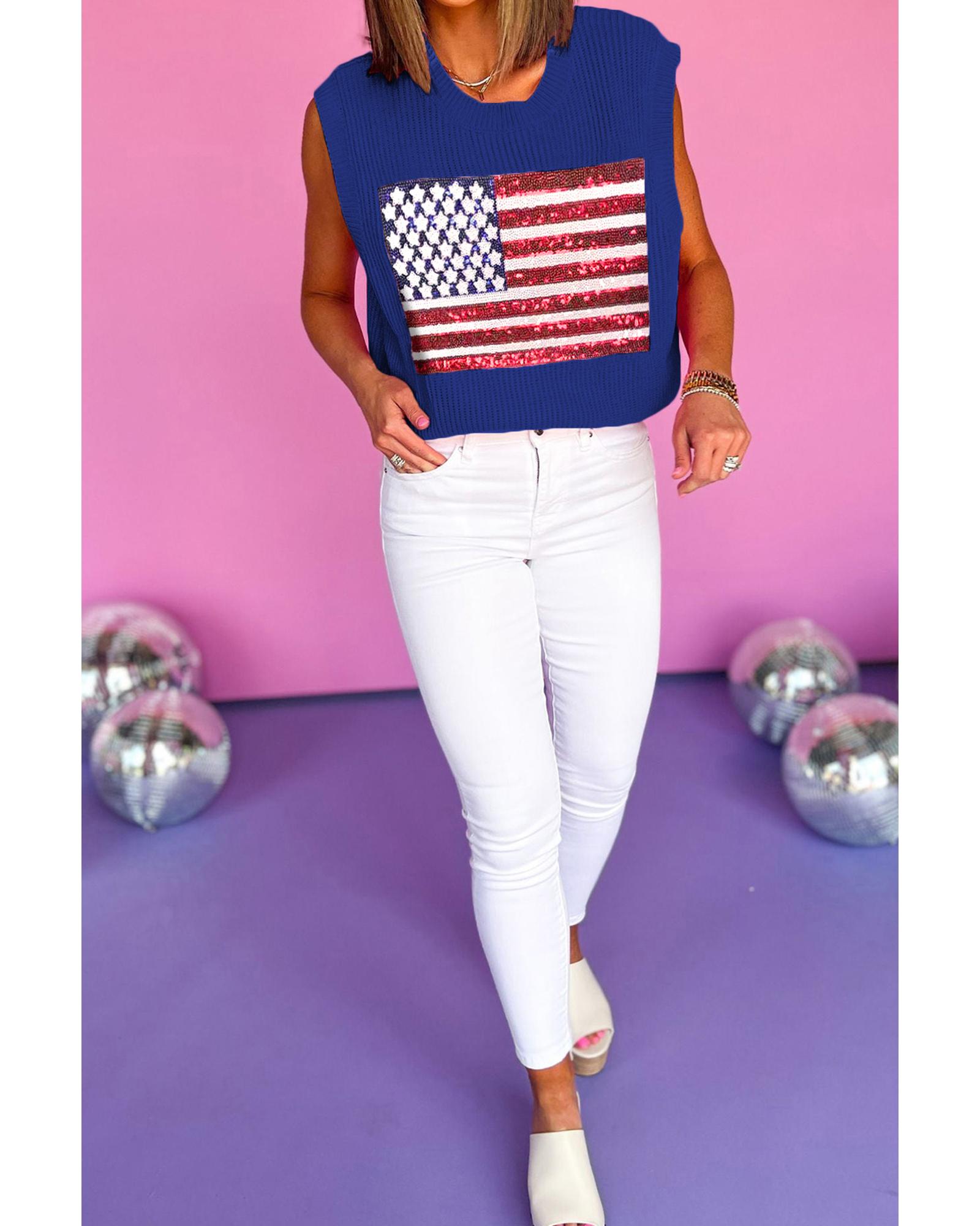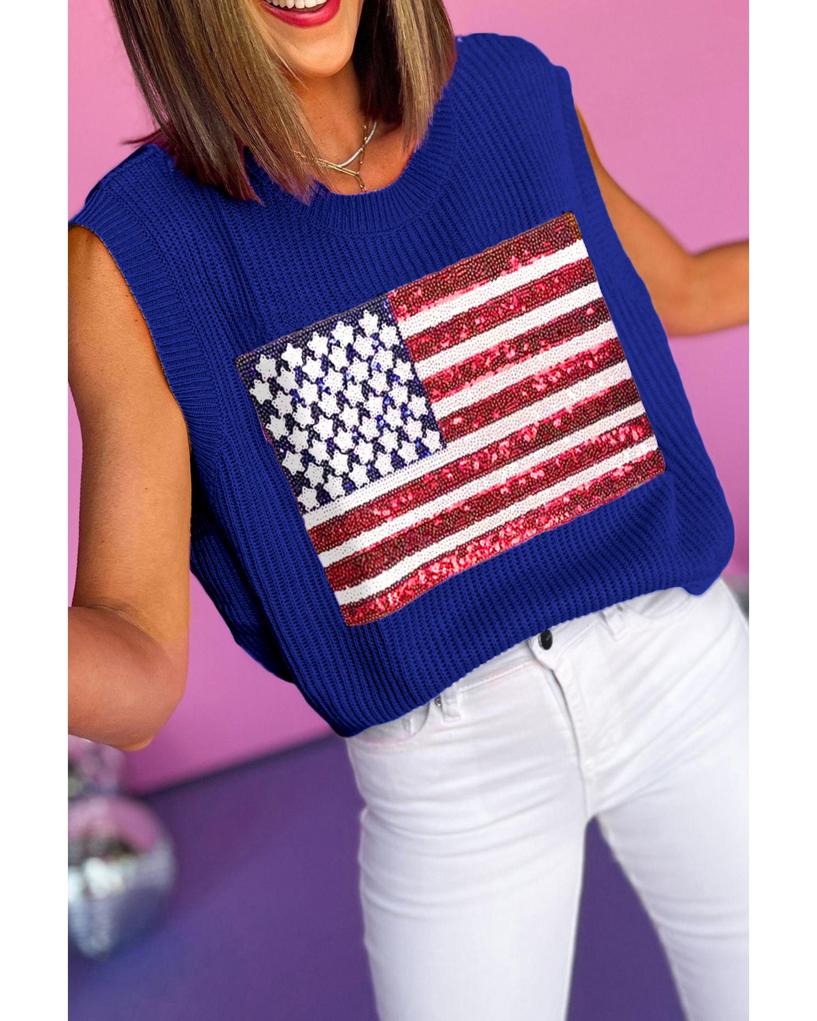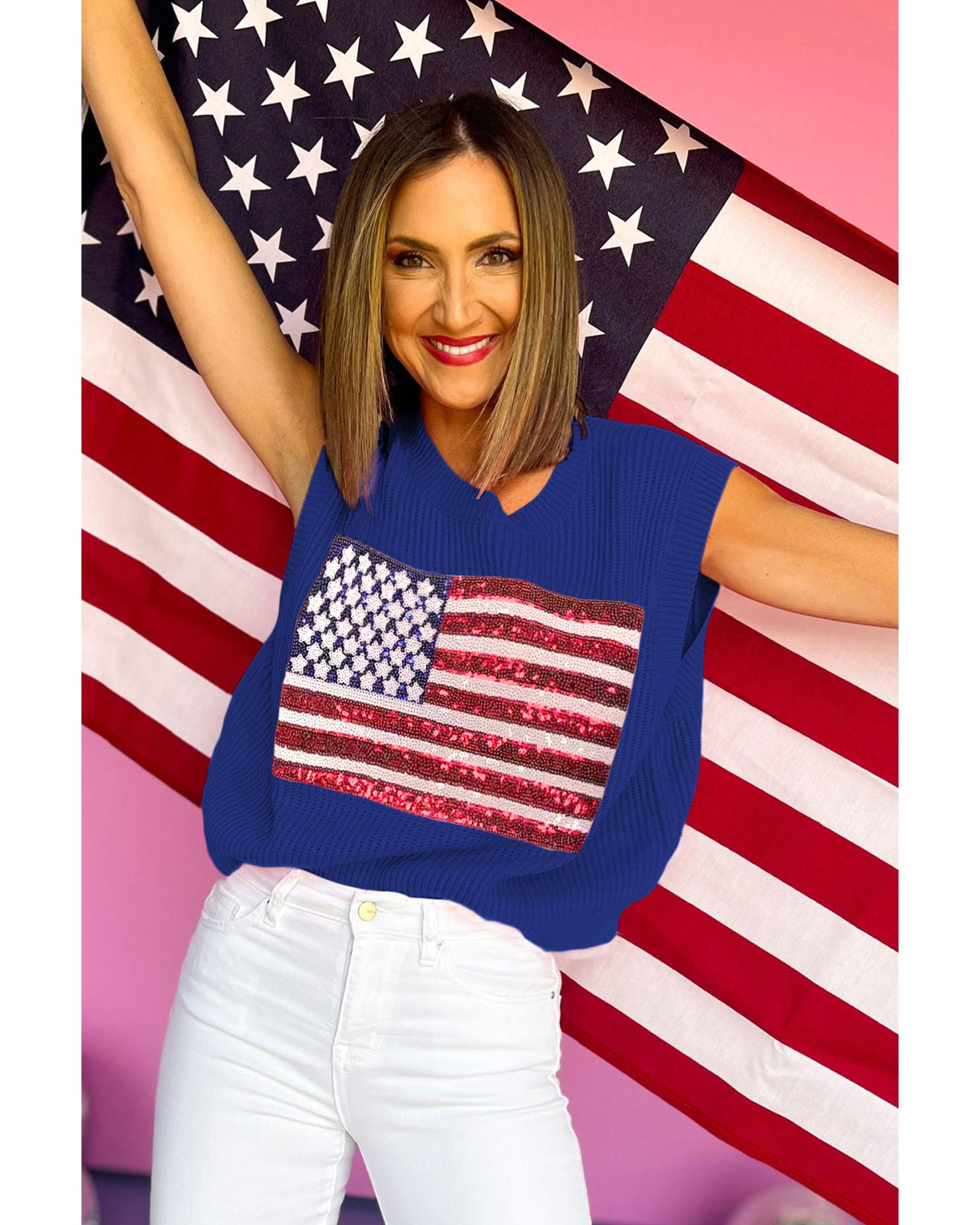 - Bluing Sparkling American Flag Knitted Vest