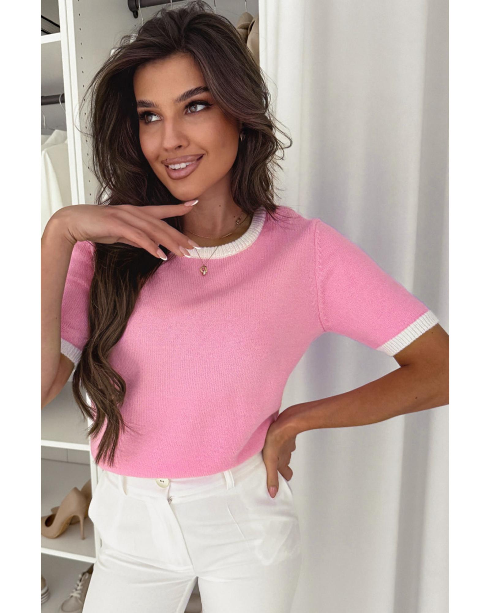 Bonbon Colorblock Bow V-Shape Cut Back Short Sleeve Sweater – M