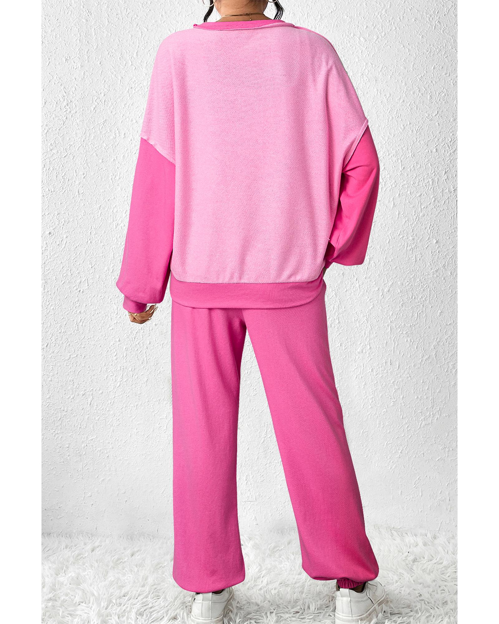 Bonbon Contrast Patchwork Pullover and Drawstring Joggers Set – S