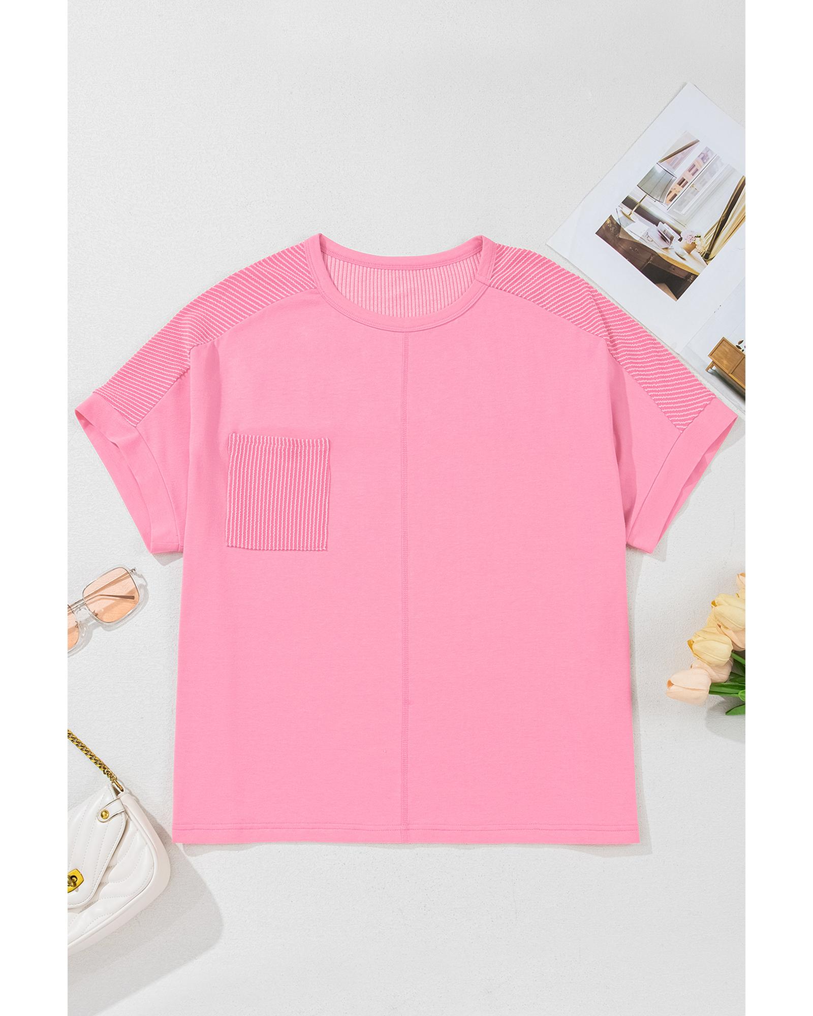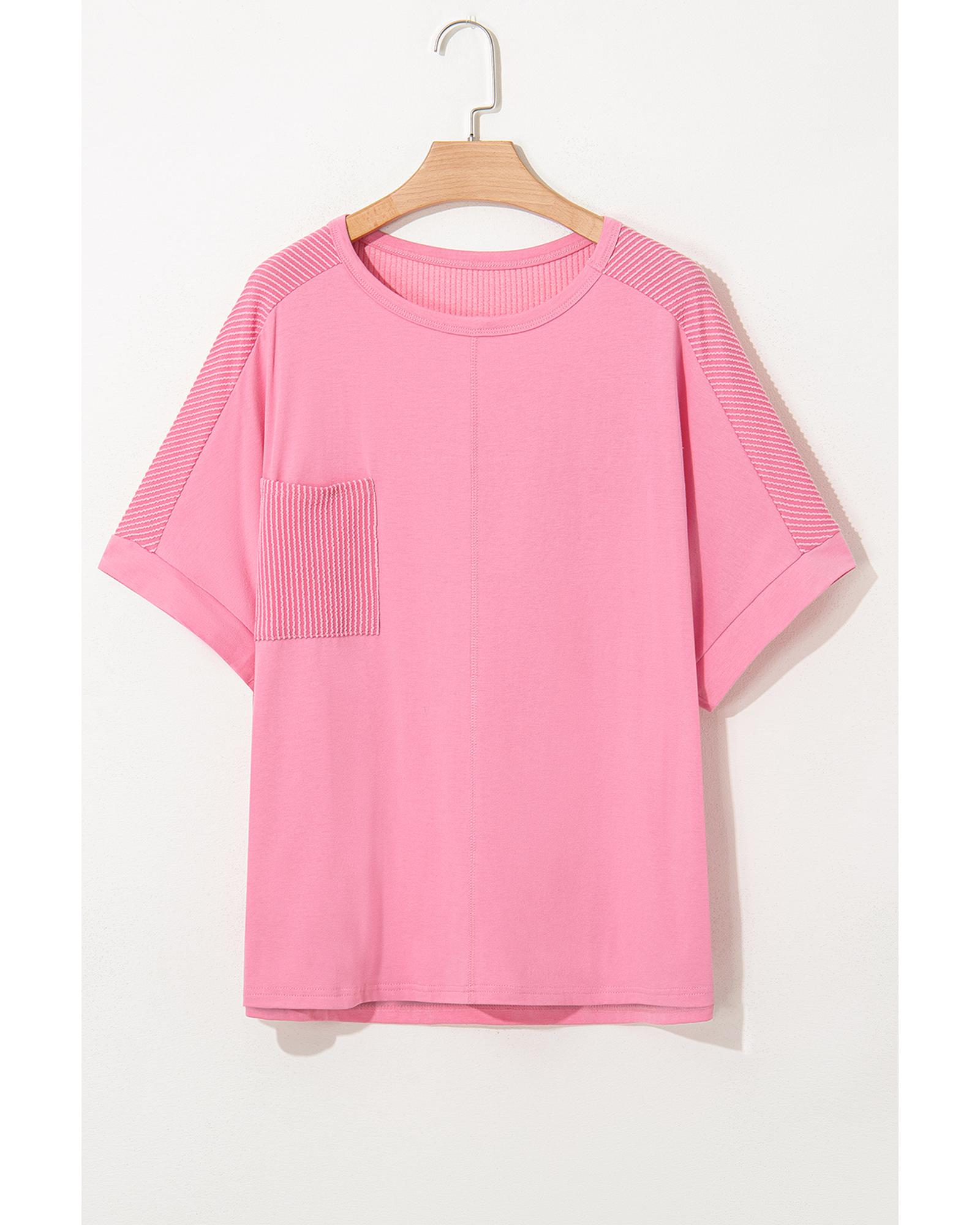 Bonbon Corded Patchwork Pocketed Plus Size T Shirt – 1X