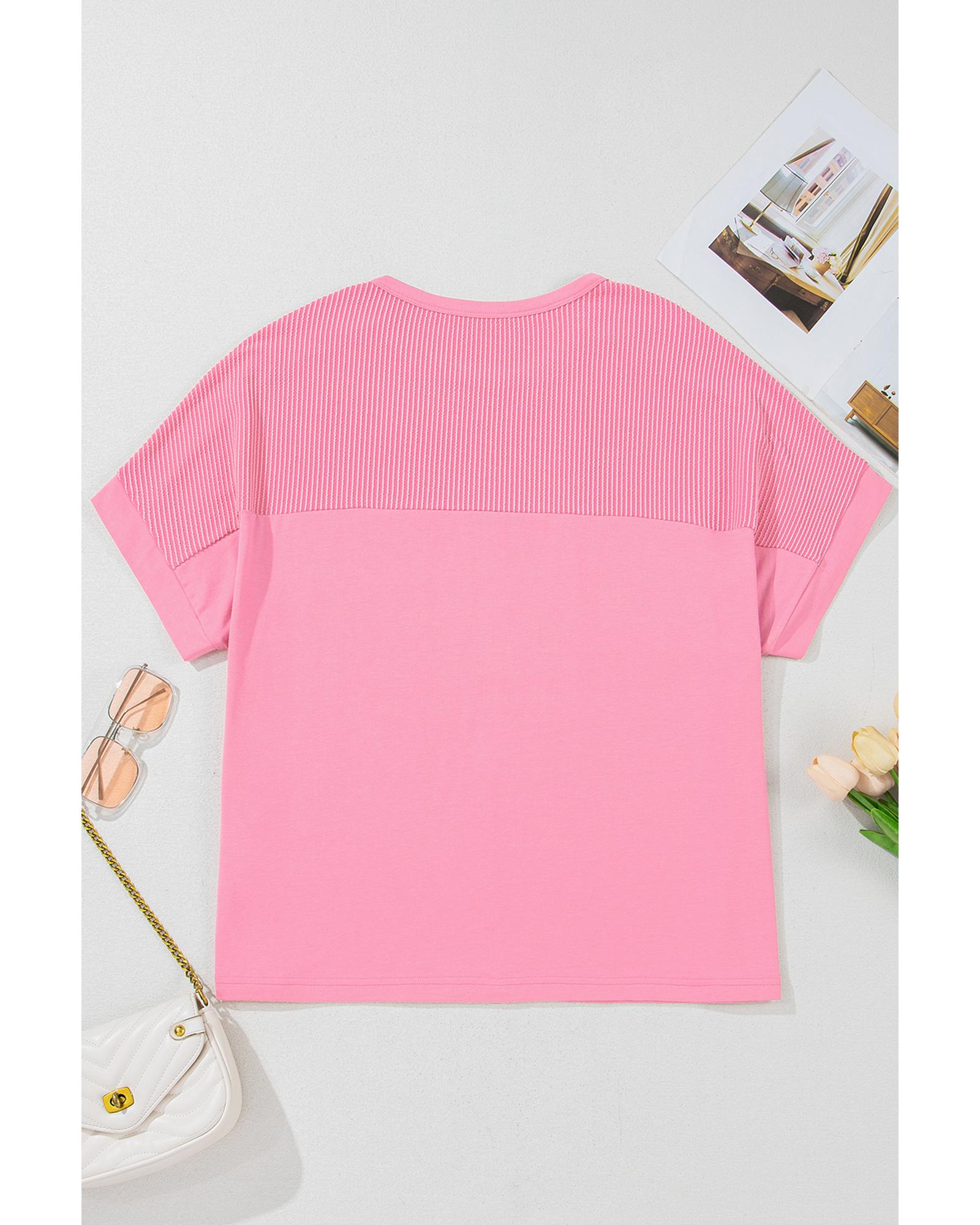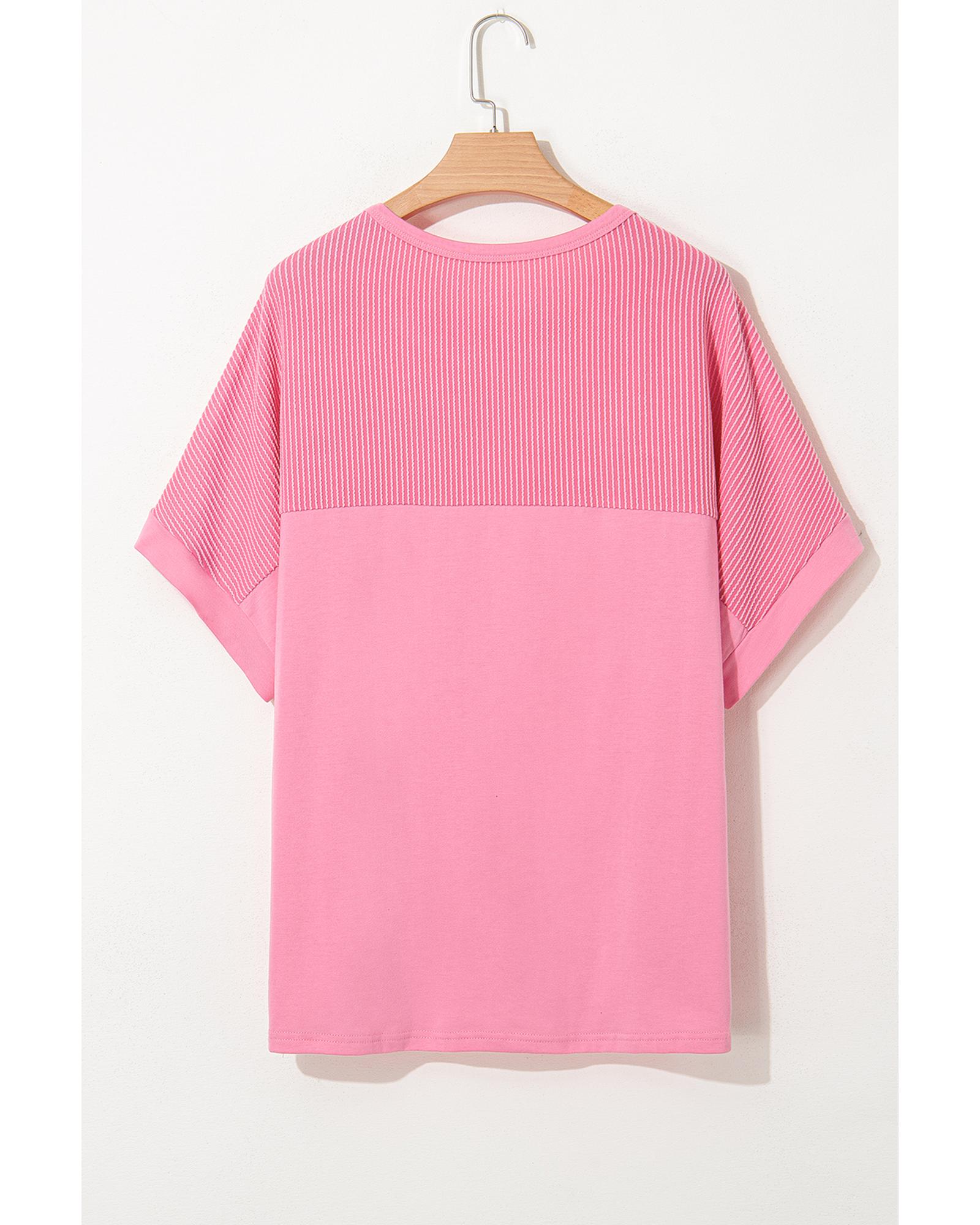 Bonbon Corded Patchwork Pocketed Plus Size T Shirt – 2X