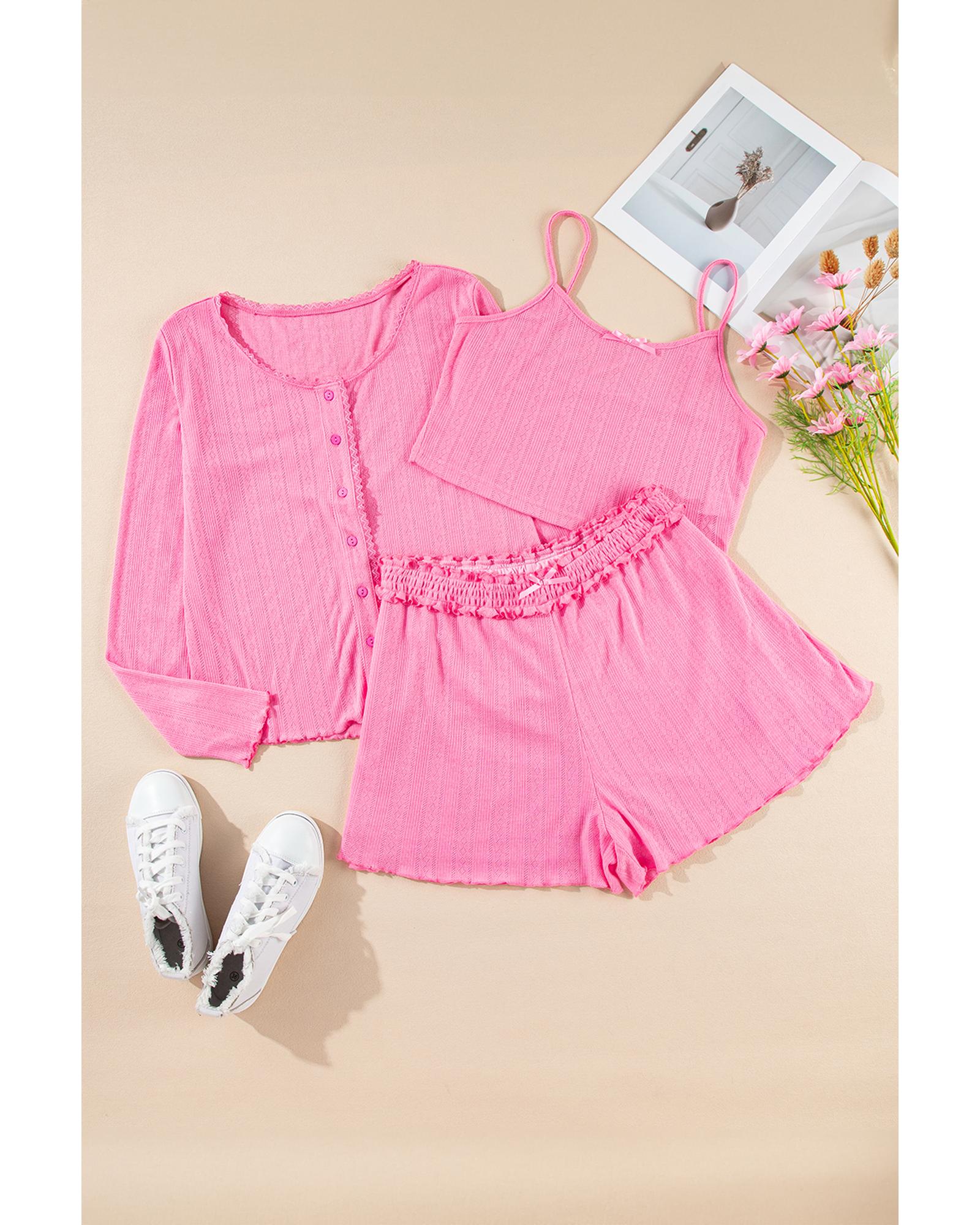 Bonbon Delicate Texture Cropped Cami Shorts and Cardigan 3pcs Lounge Set – S