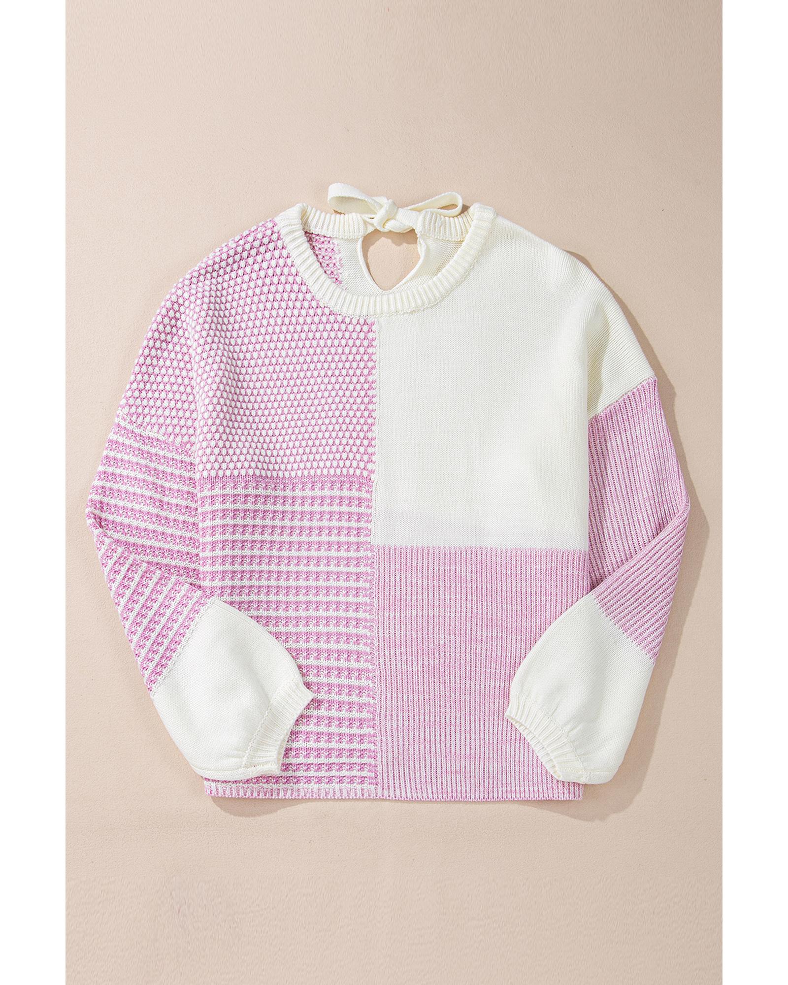 Bonbon Neutral Colorblock Tie Back Sweater – L