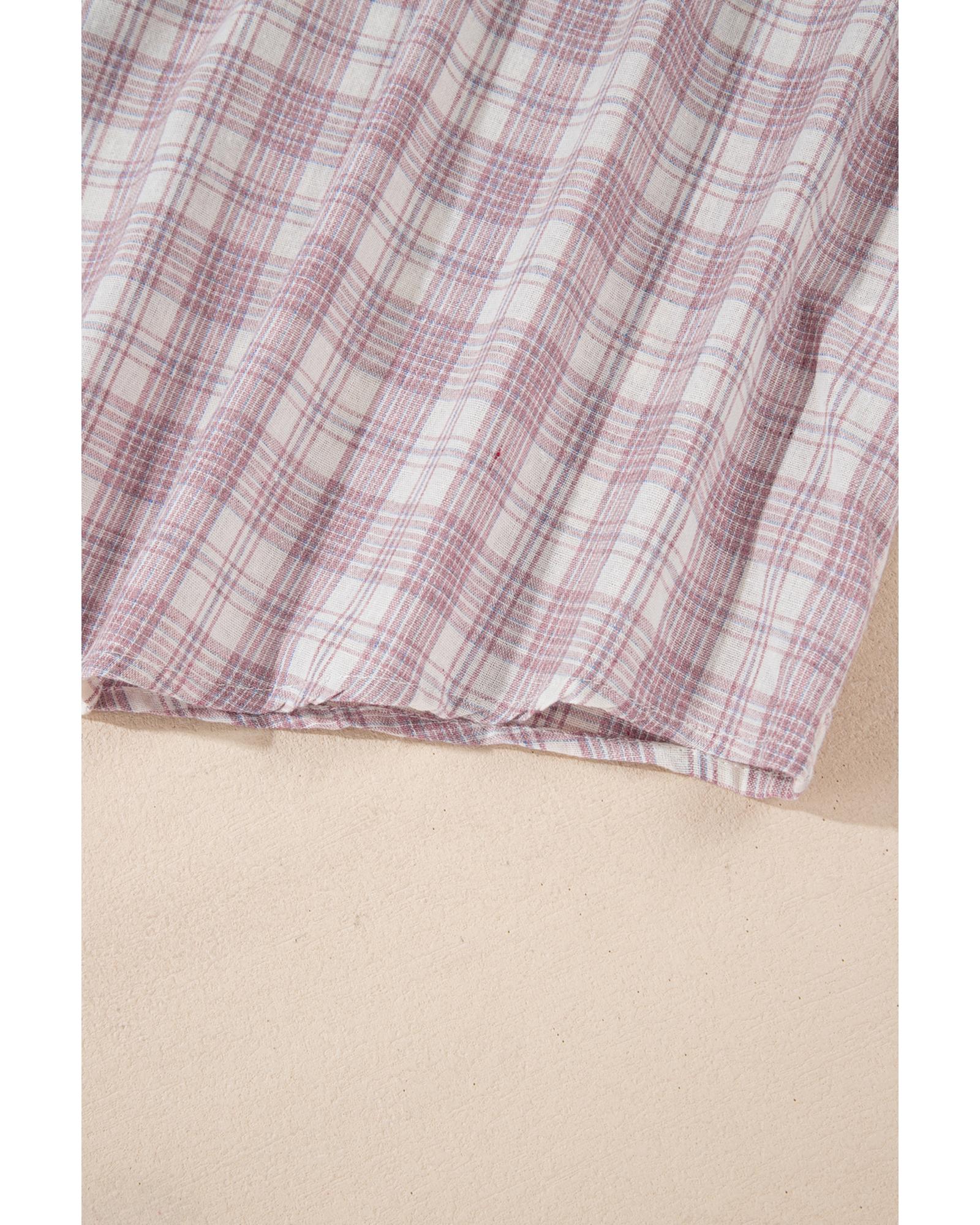 Bonbon Plaid Print Drawstring Hooded Button-up Plus Size Shirt – 4X