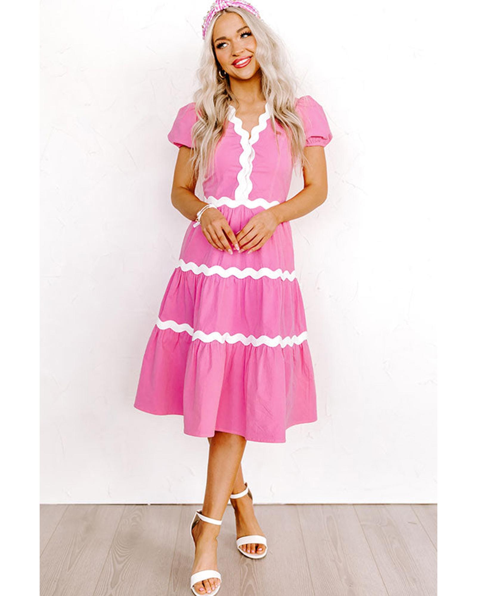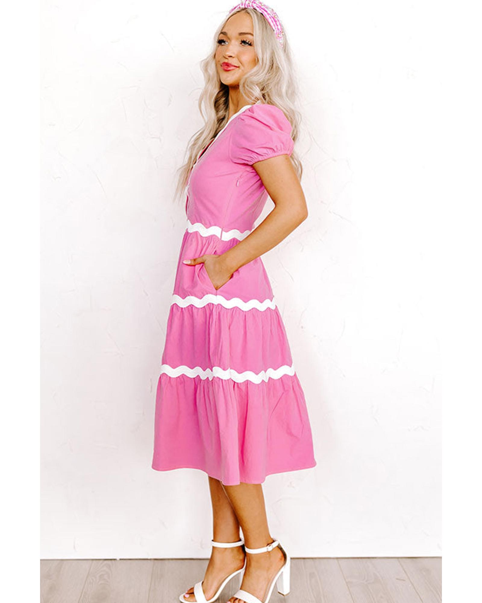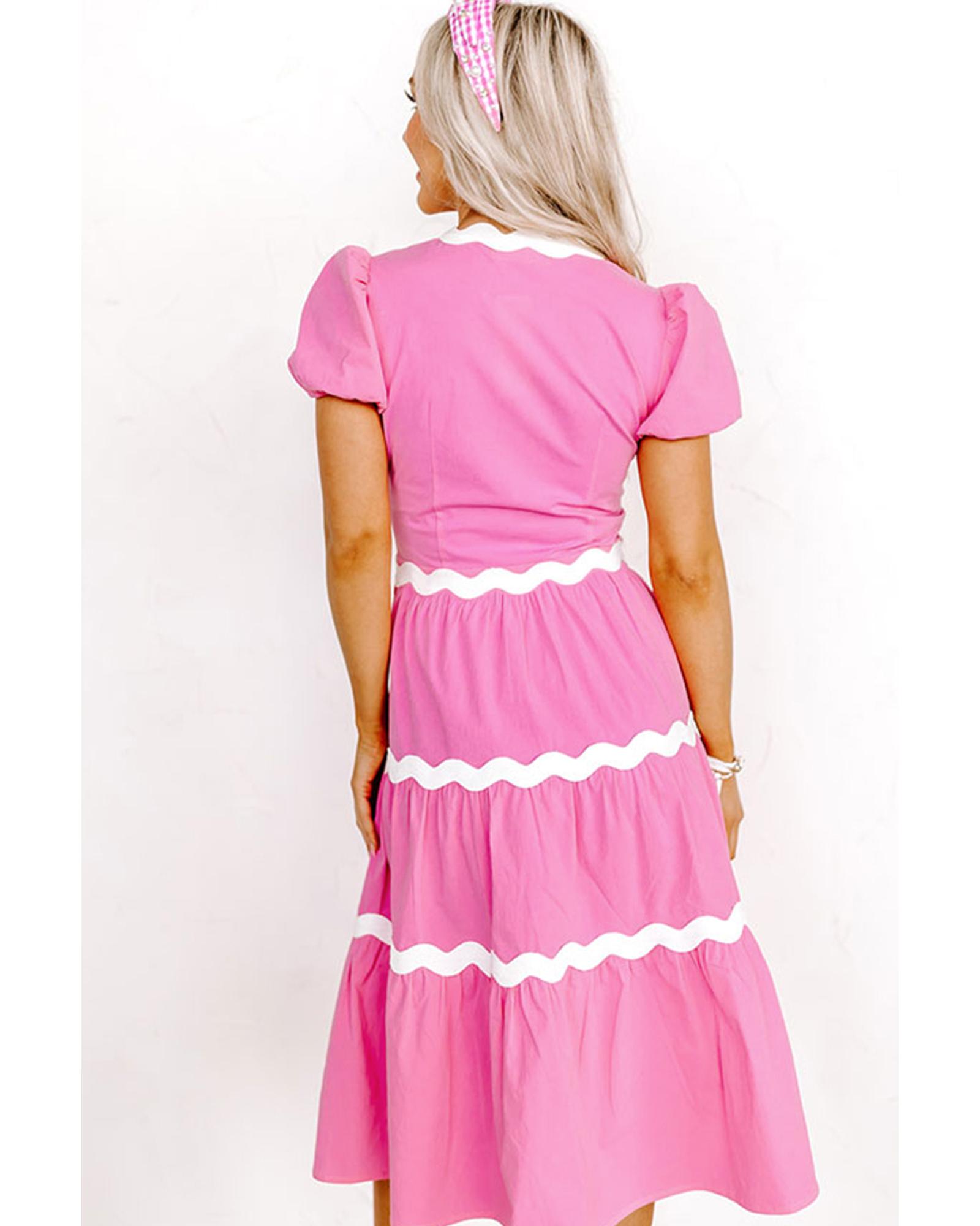 Bonbon Ric Rac Trim Short Puff Sleeve Flowy Midi Dress – XL