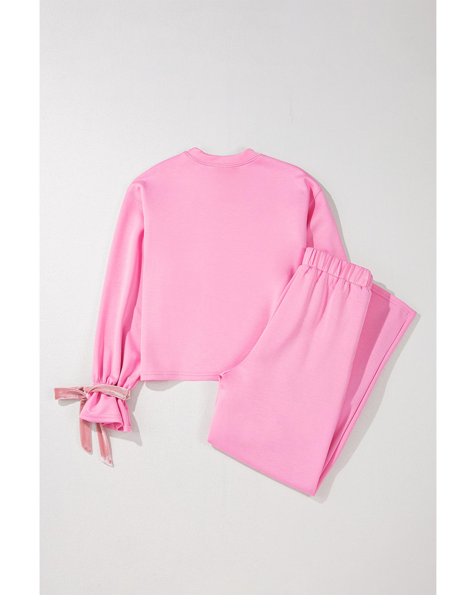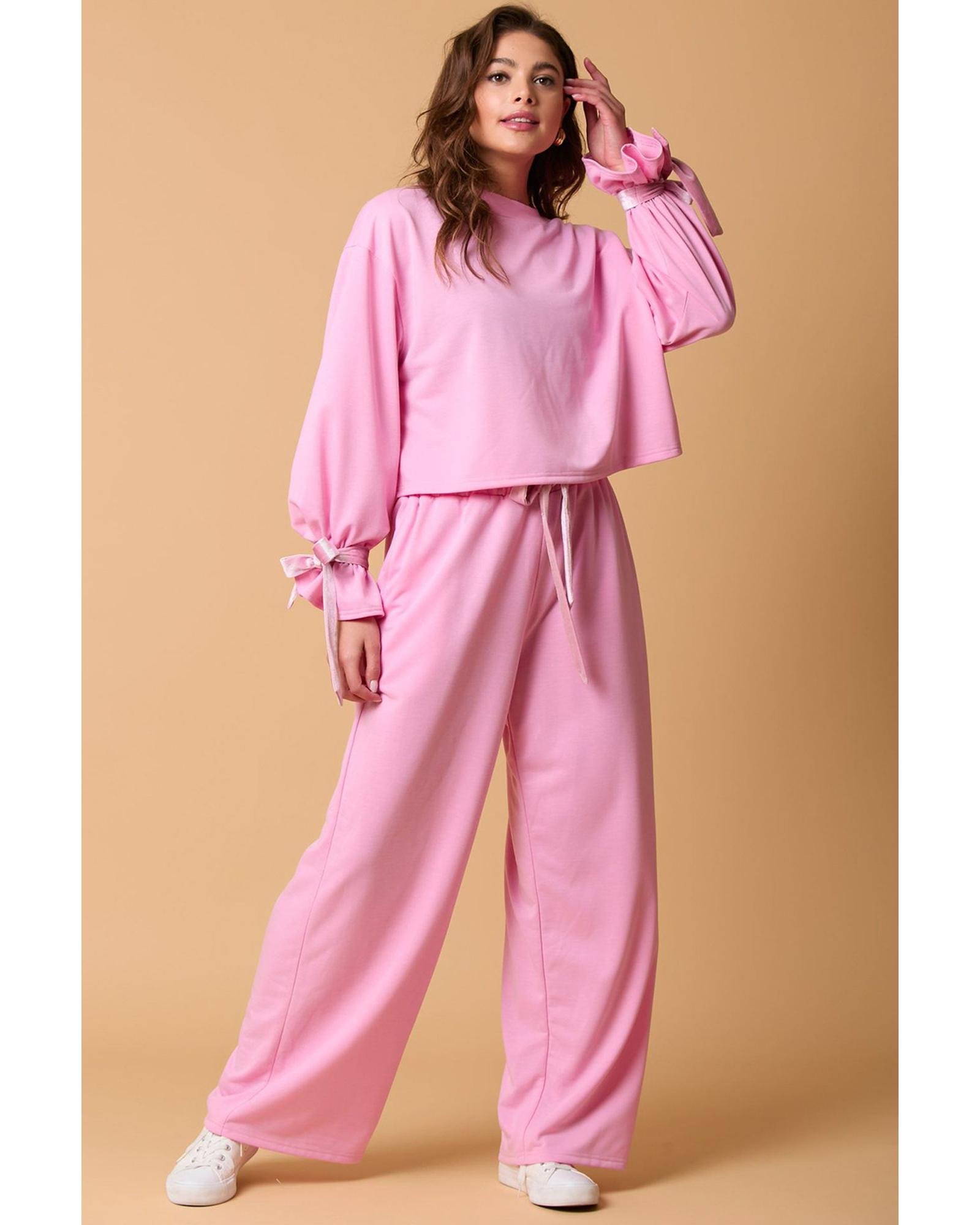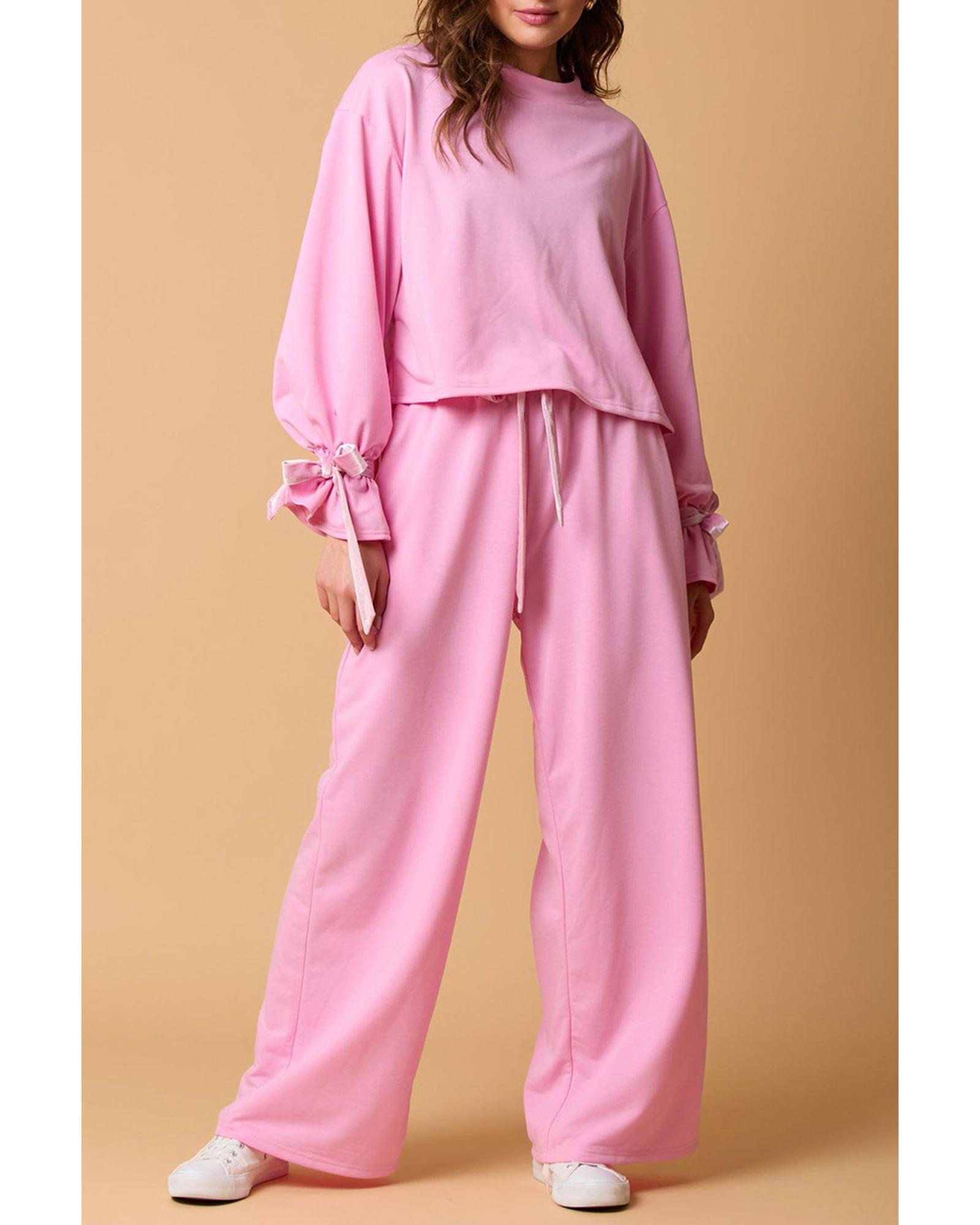 Bonbon Solid Color Drawstring Long Sleeve Top and Pants Set – XL