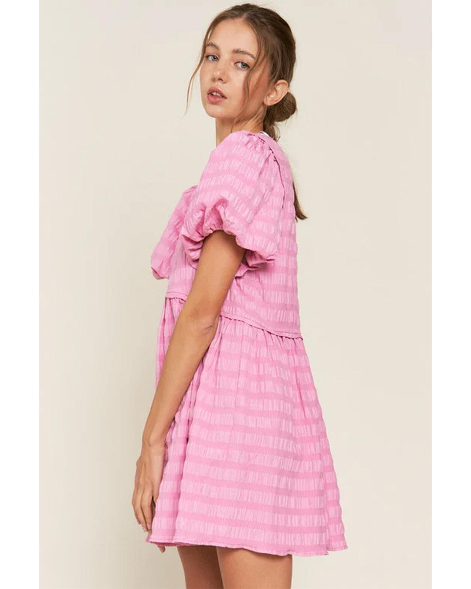 Bonbon Textured Bubble Sleeve High Waist Mini Dress – L