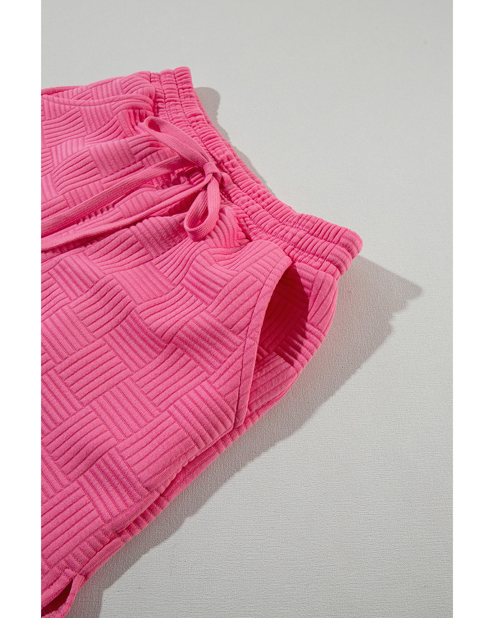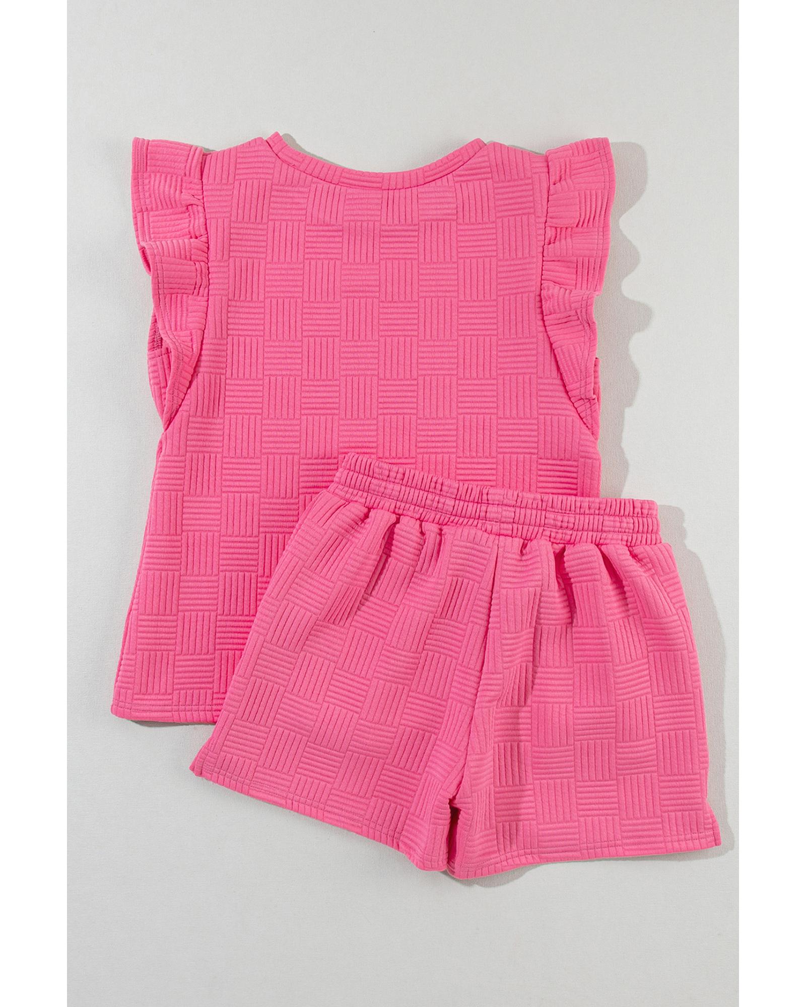 Bonbon Textured Ruffled Sleeve Tee and Drawstring Shorts Set – M