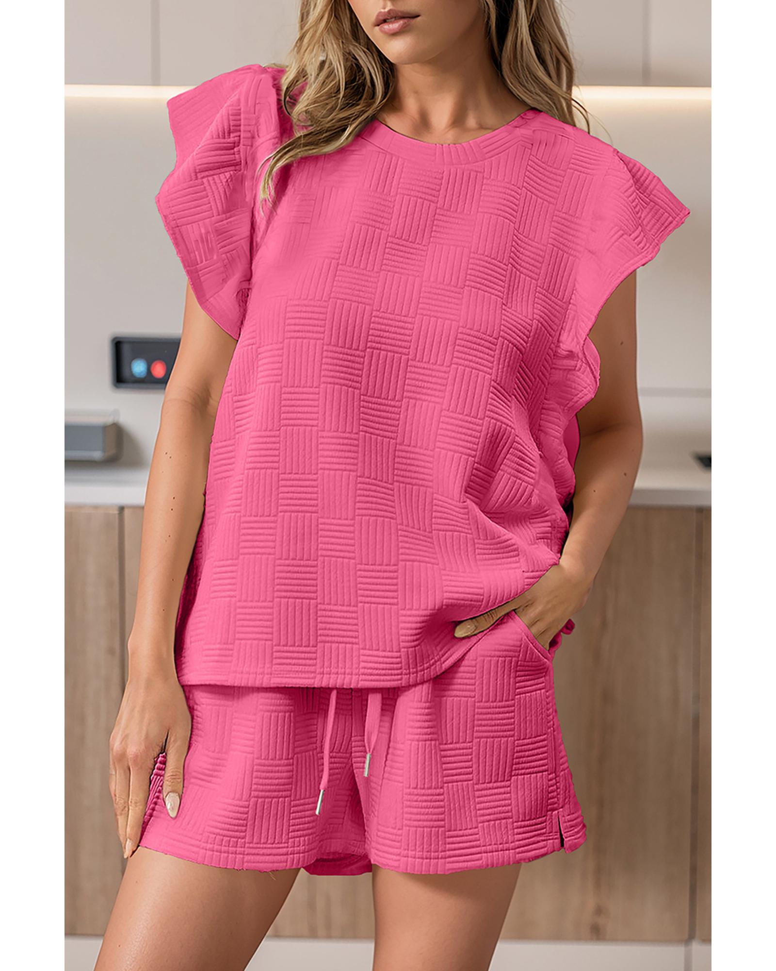 Bonbon Textured Ruffled Sleeve Tee and Drawstring Shorts Set – XL