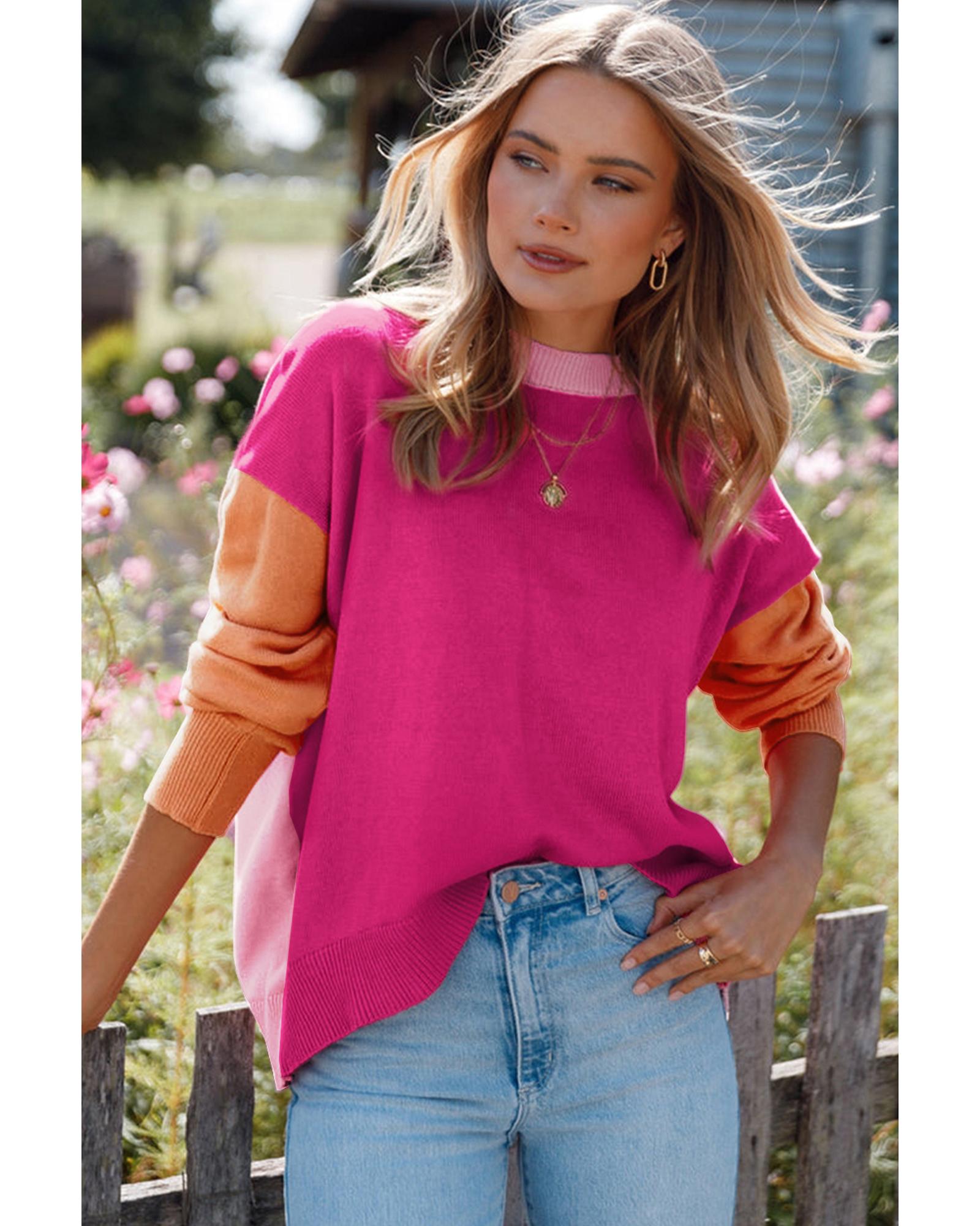 Bonbon Three Tone Contrast Round Neck Loose Sweater – S