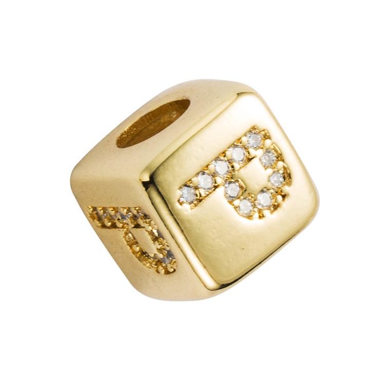 • 1 x Brass Micro Inlaid Couple Red String Diy Bracelet English Letter Beads Style – P