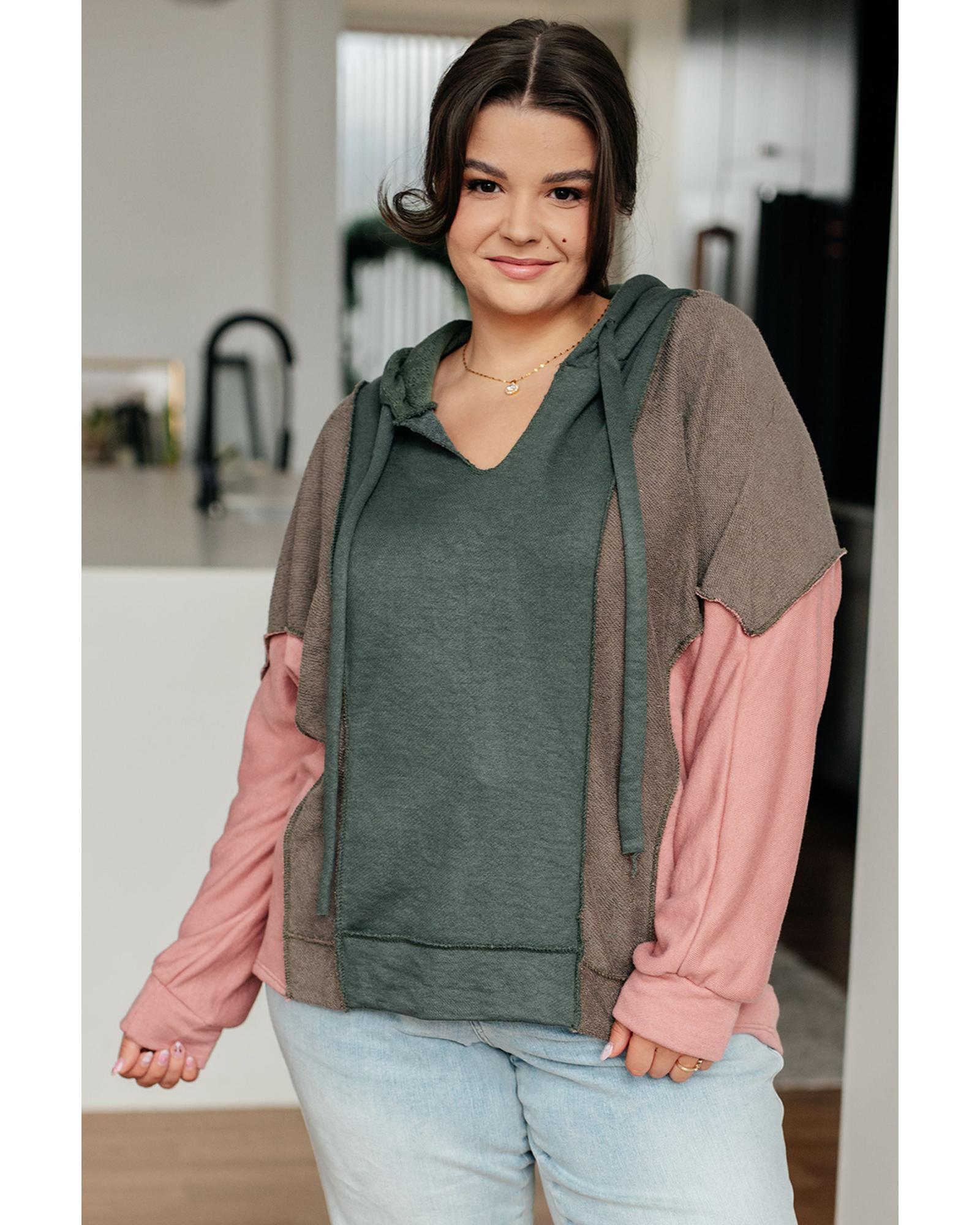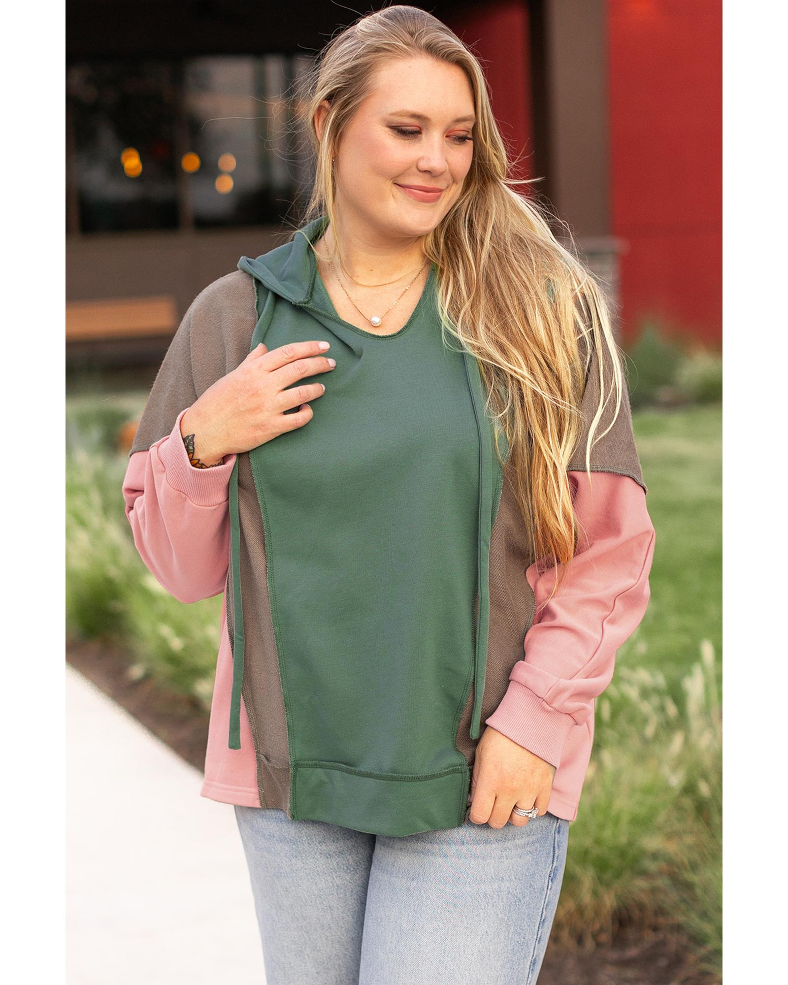 Breen Plus Size Colorblock Patchwork V Neck Hoodie – 1X