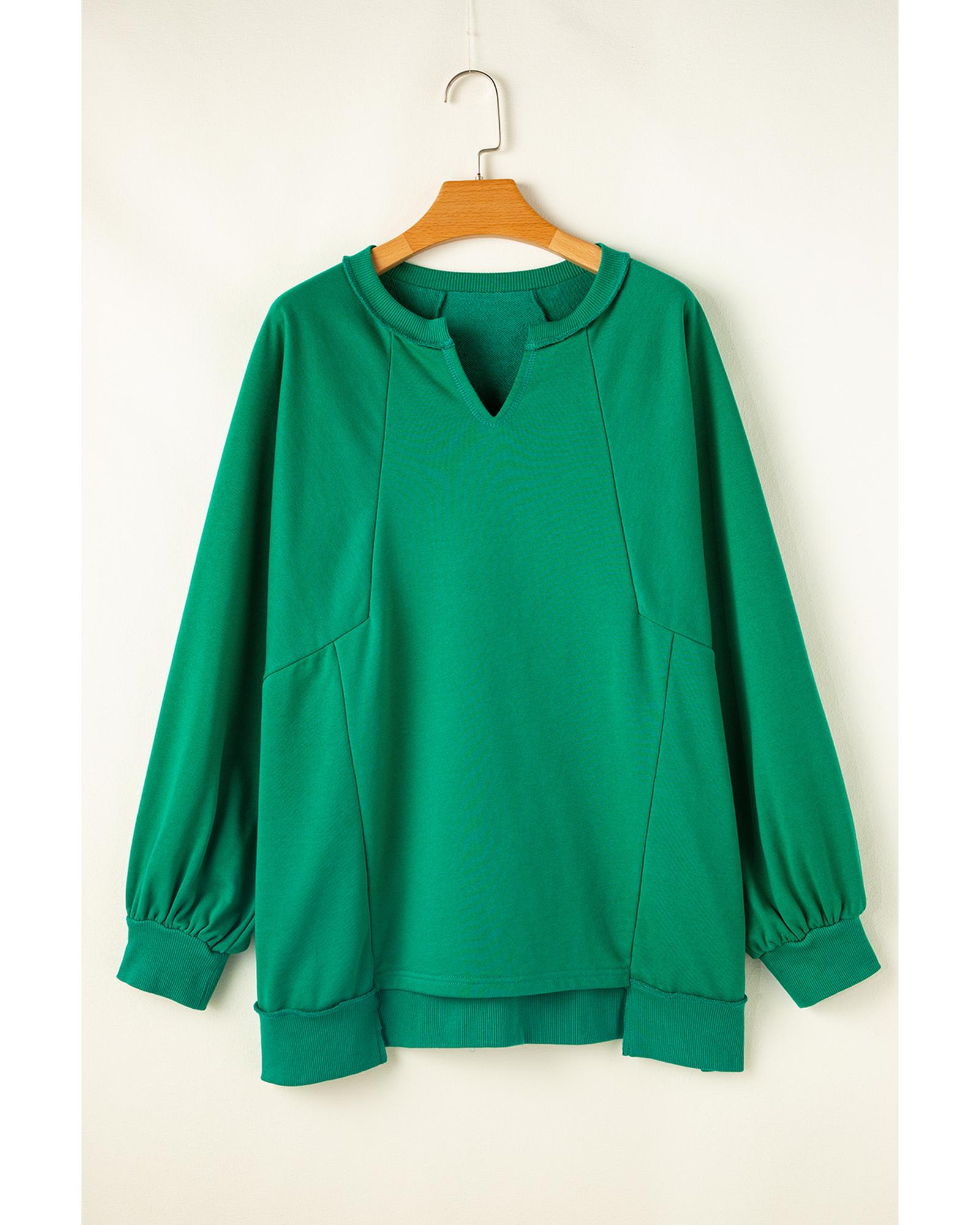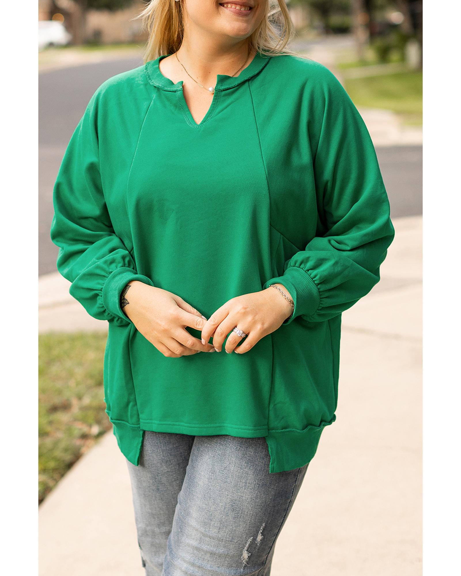 Bright Green Exposed Seam Notched Neck Drop Shoulder Plus Sweatshirt – 2X