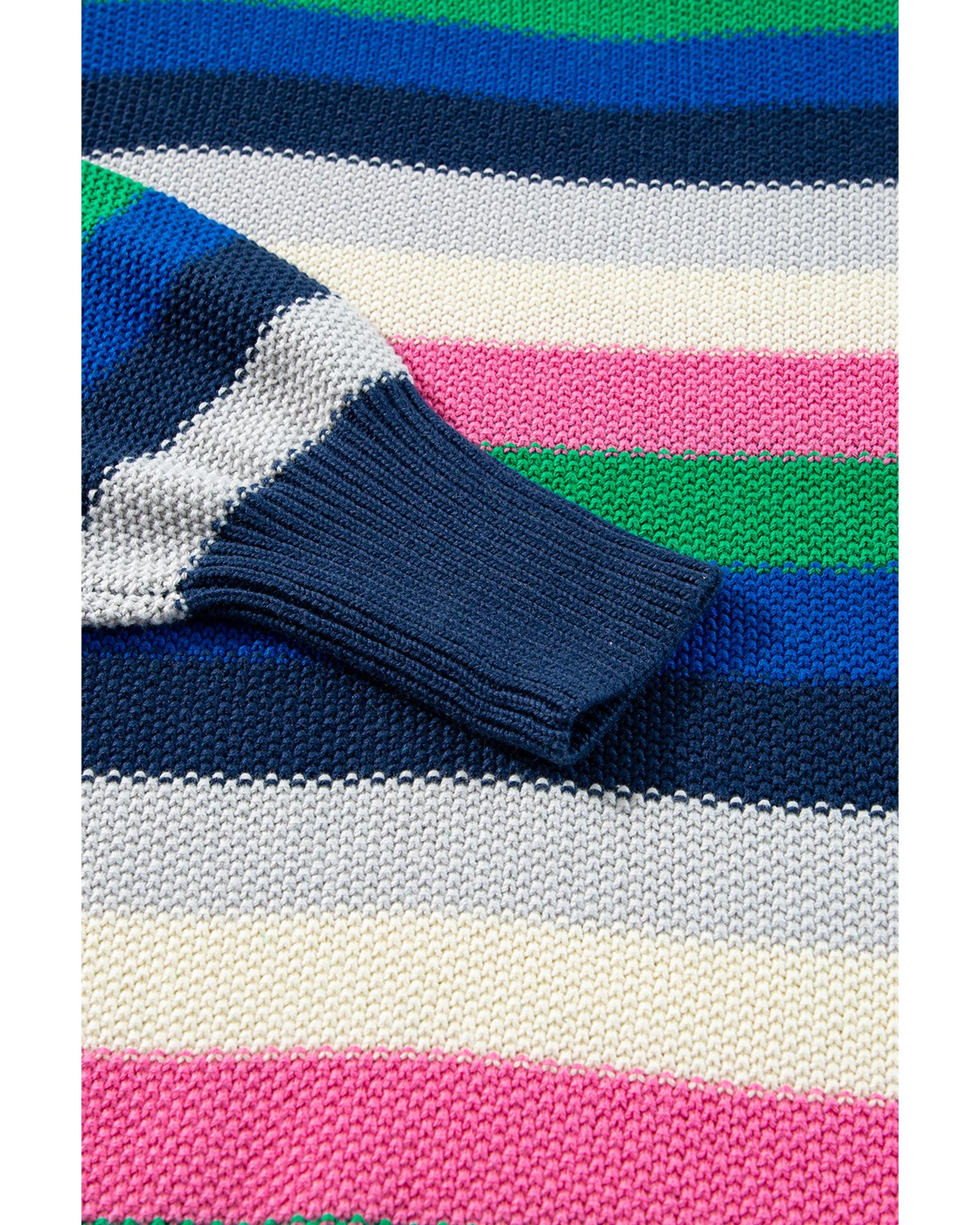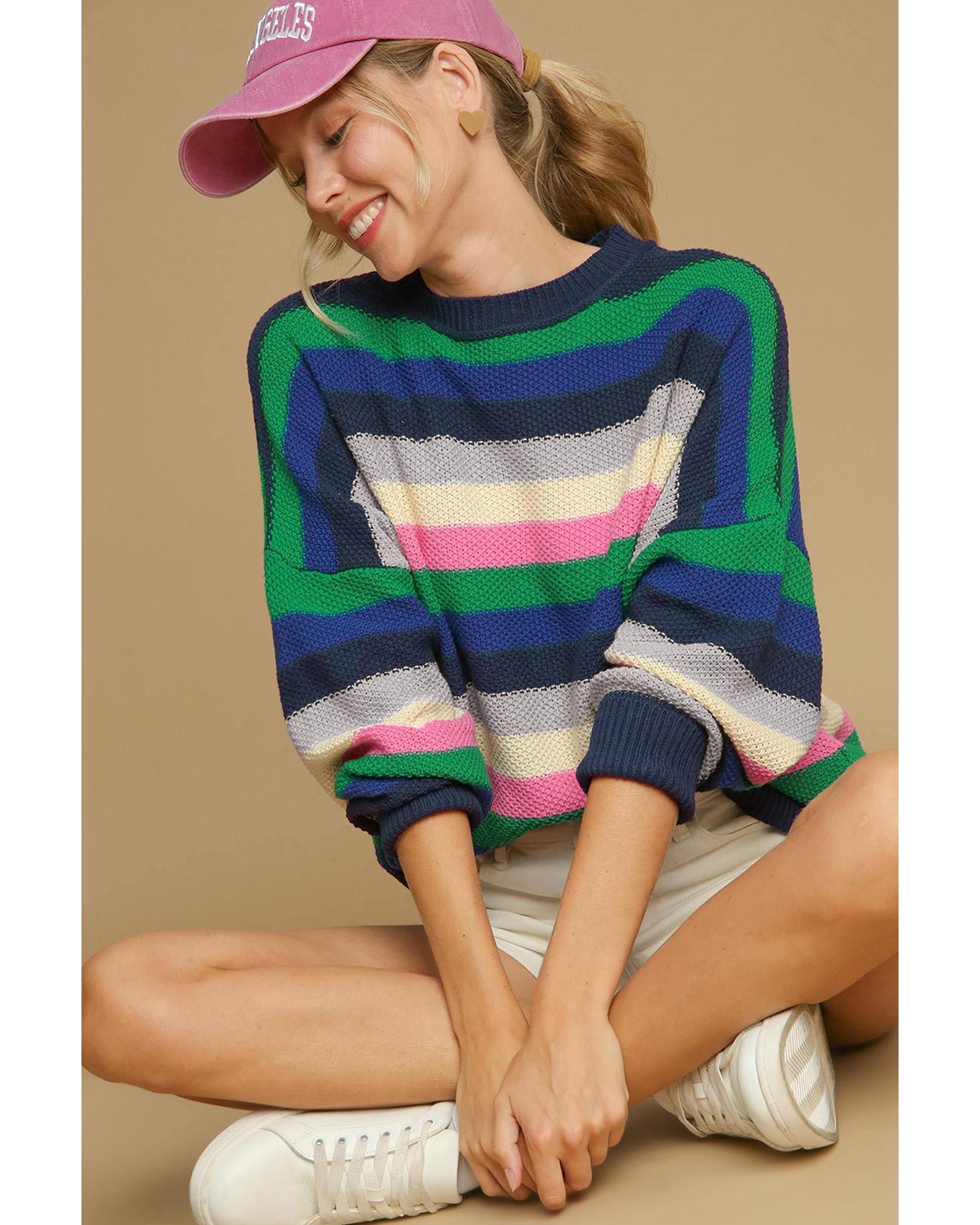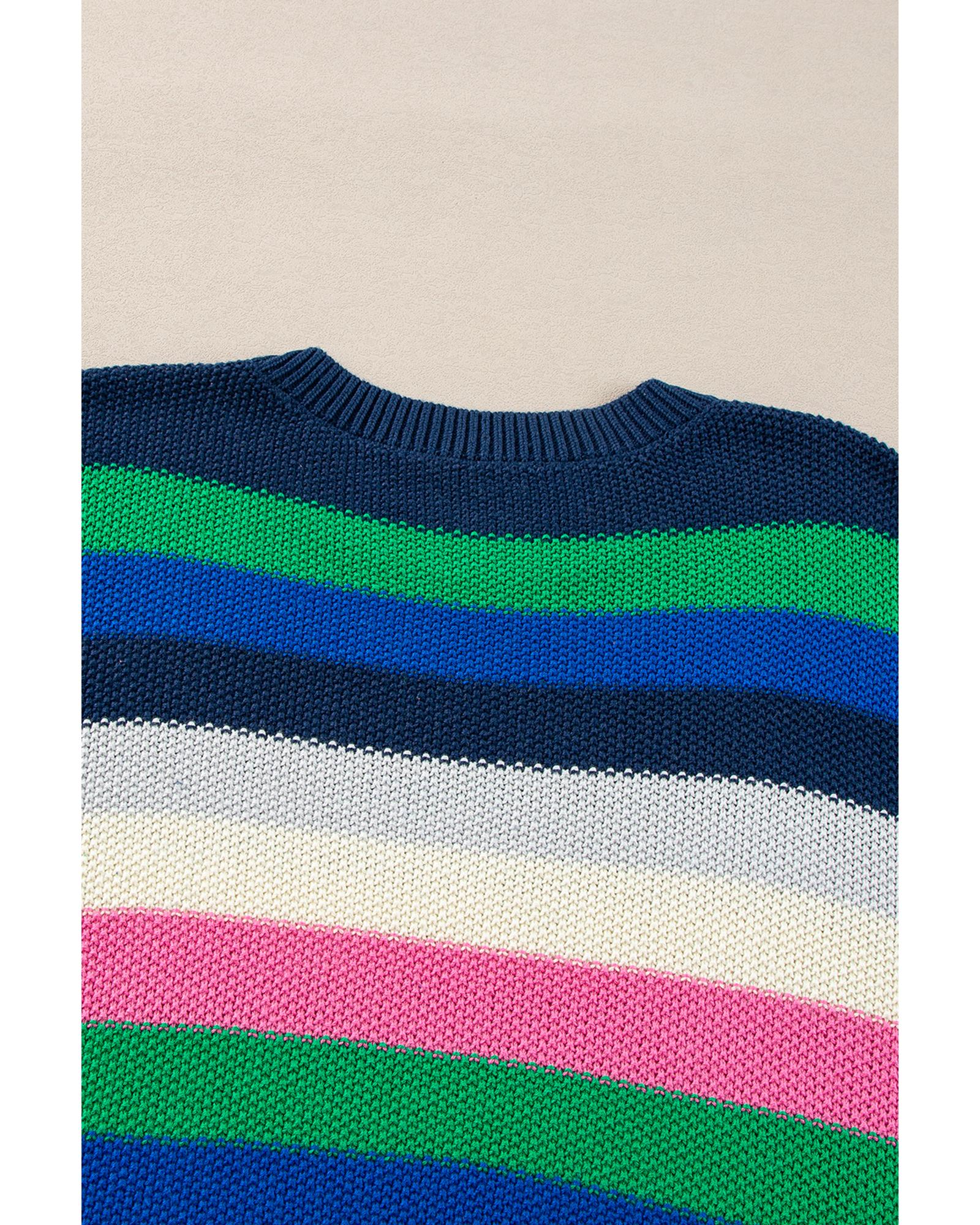 Bright Green Rainbow Striped Crew Neck Drop Shoulder Sweater – L