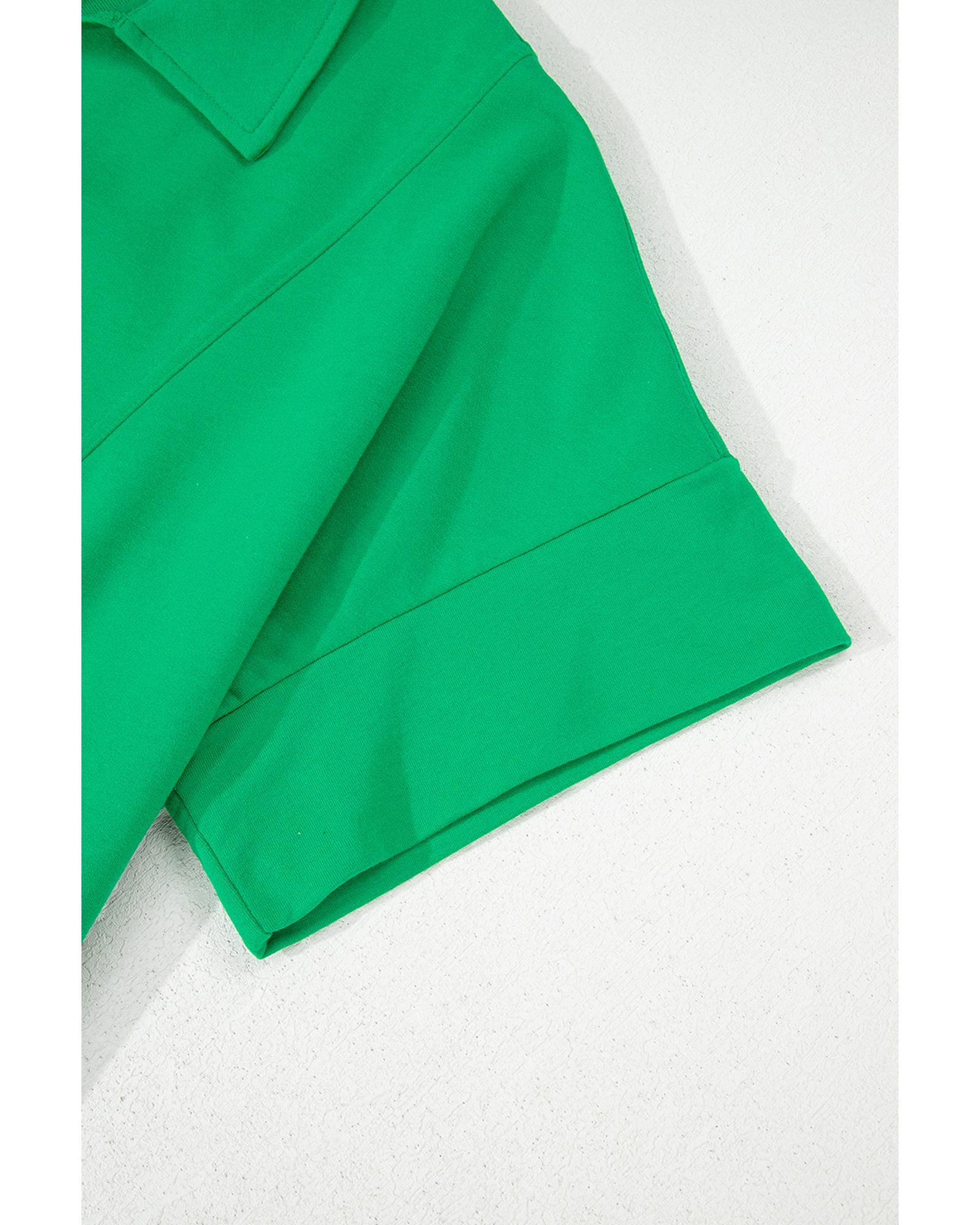 Bright Green Short Sleeve Turn-Down Collar Plus Size Blouse – 4X