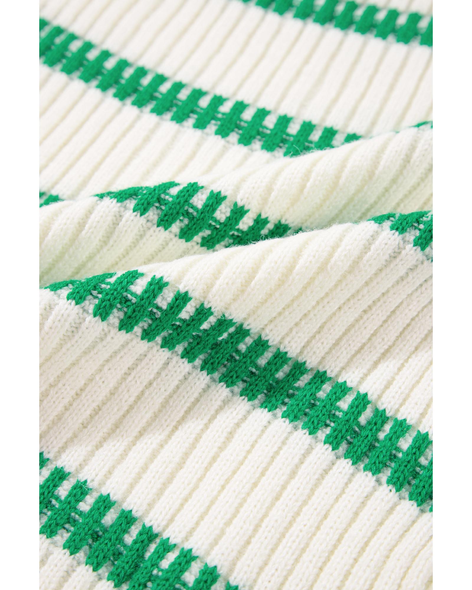 Bright Green Striped Round Neck Casual Sweater Vest – L