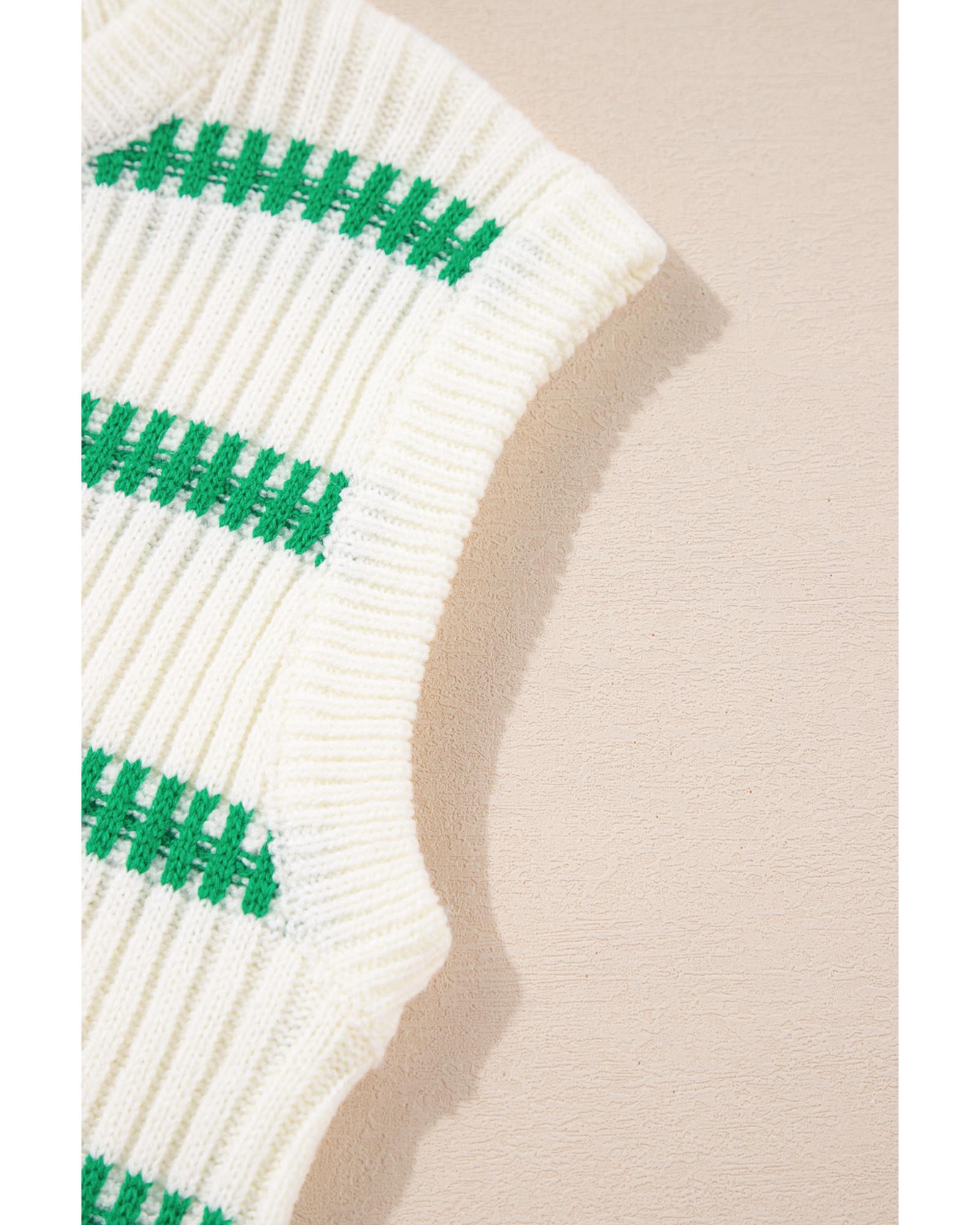 Bright Green Striped Round Neck Casual Sweater Vest – S