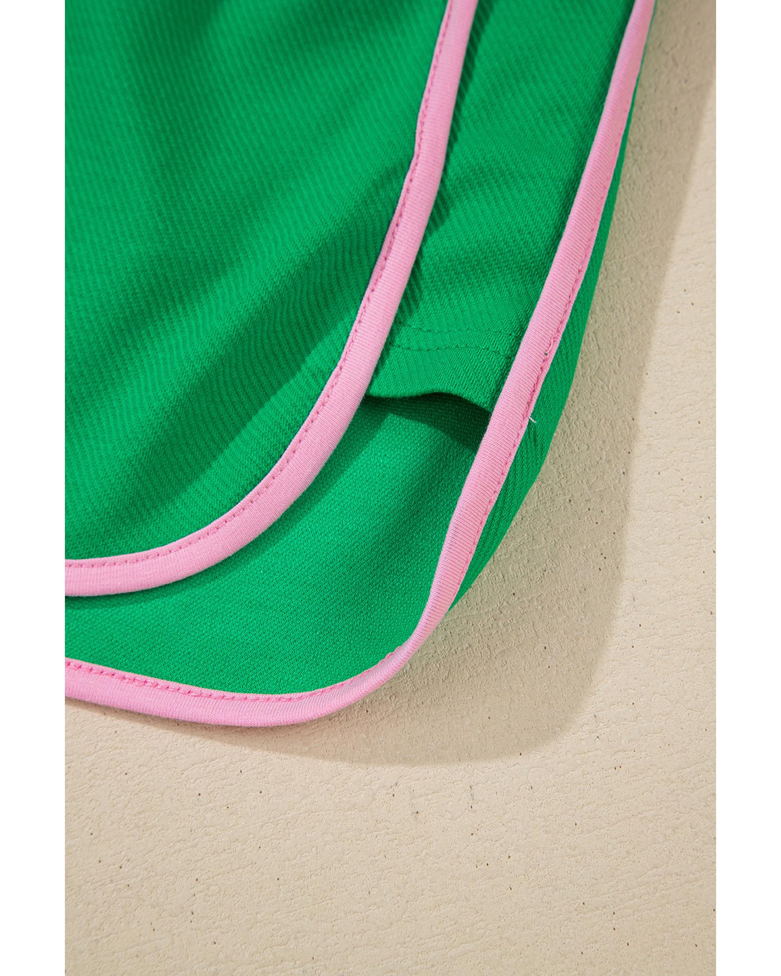 - Bright Green Two Tone Contrast Textured Crewneck Tee and Shorts Set