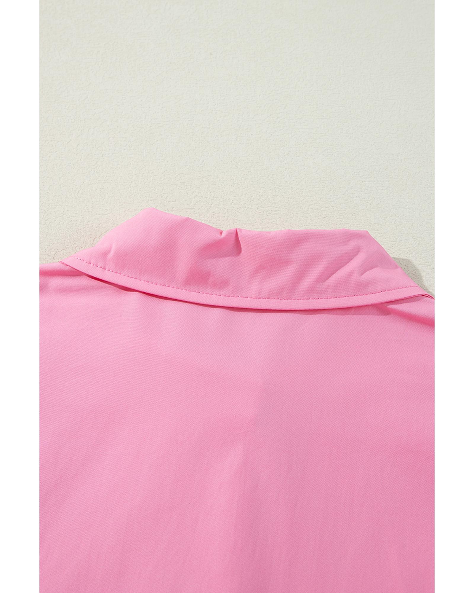 Bright Pink Balloon Sleeve Button Up Mini Shirt Dress - L