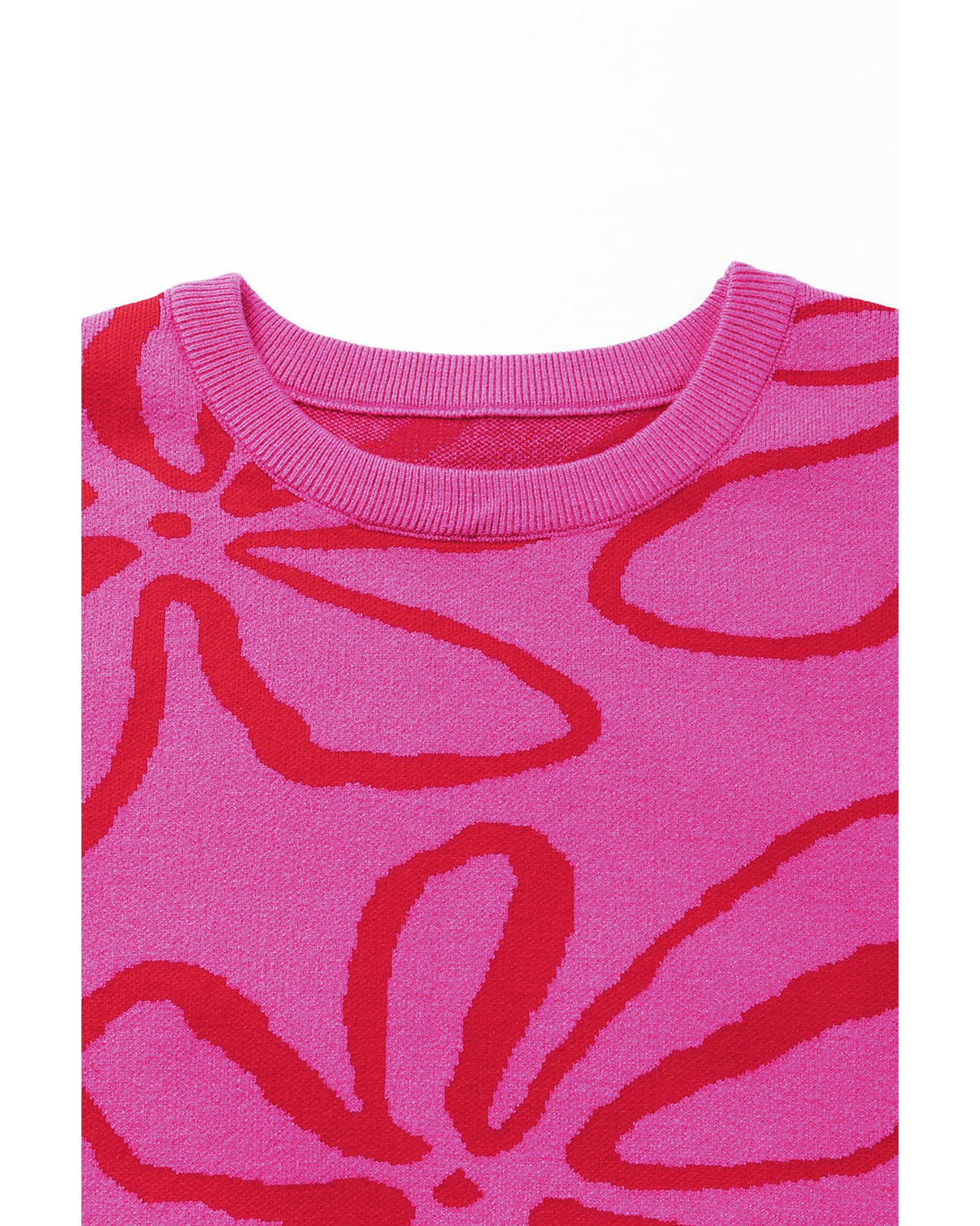 Bright Pink Button Sides Sleeveless Floral Knitted Top – XL