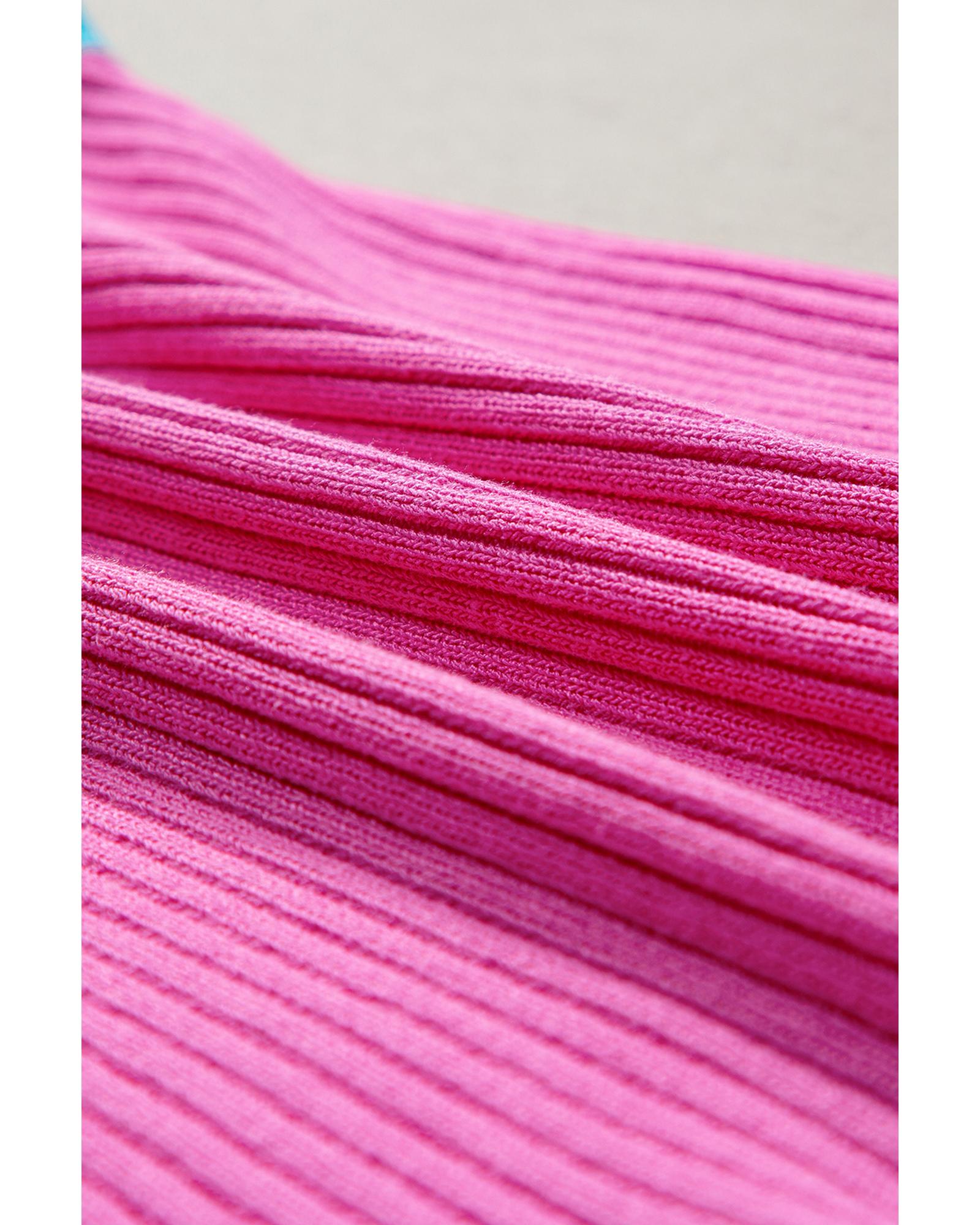 Bright Pink Colorblock Edge Ribbed Knit U Neck Tank Top – XL