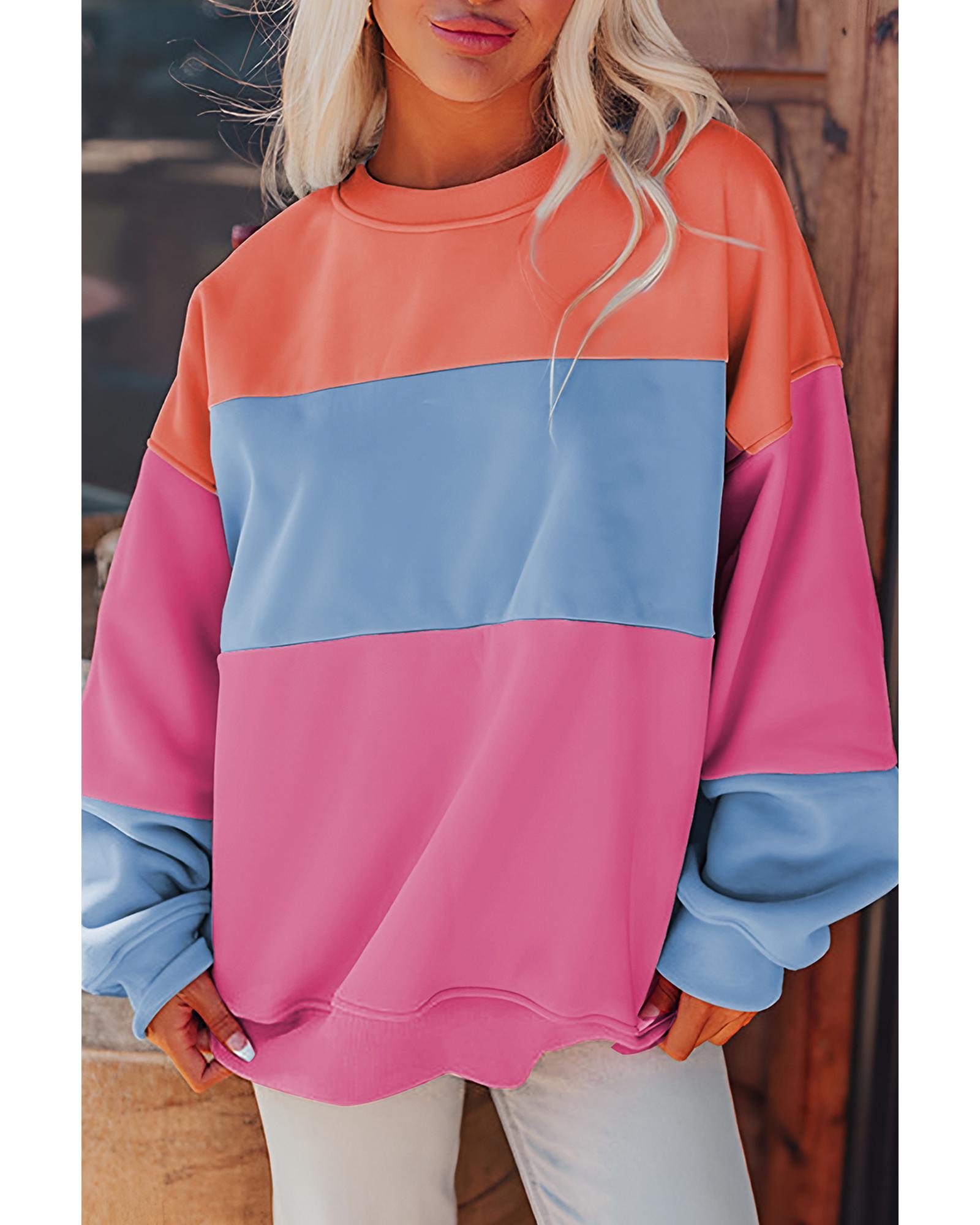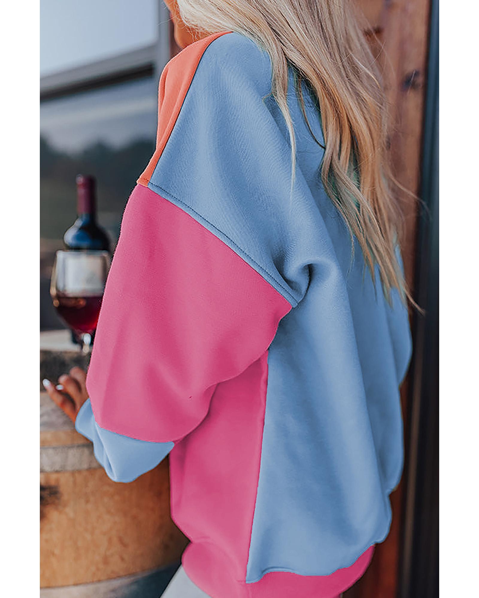 Bright Pink Colorblock Patchwork Drop Shoulder Sweatshirt – 2XL