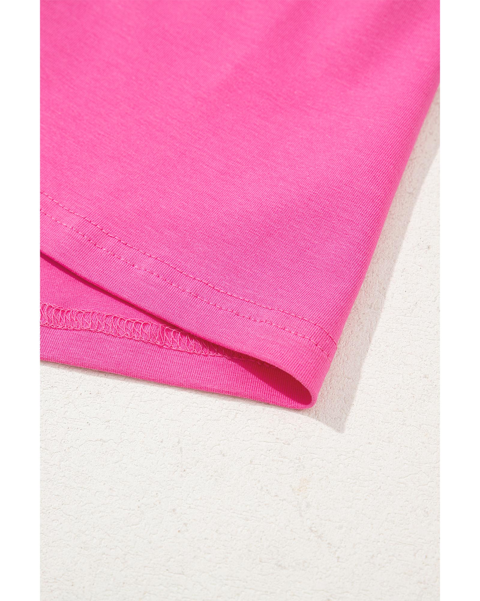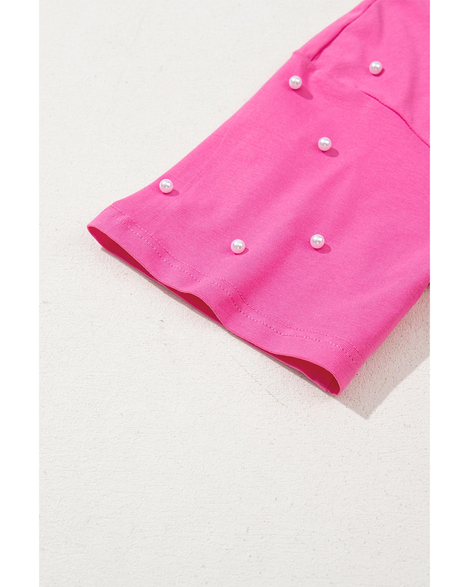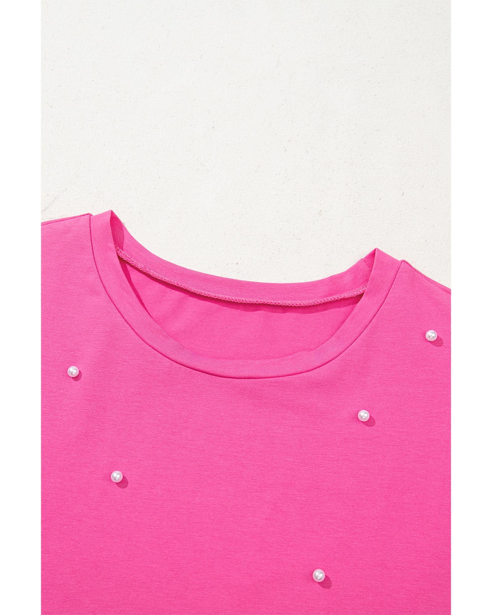 Bright Pink Pearl Beaded Drop Shoulder Crewneck T Shirt – S