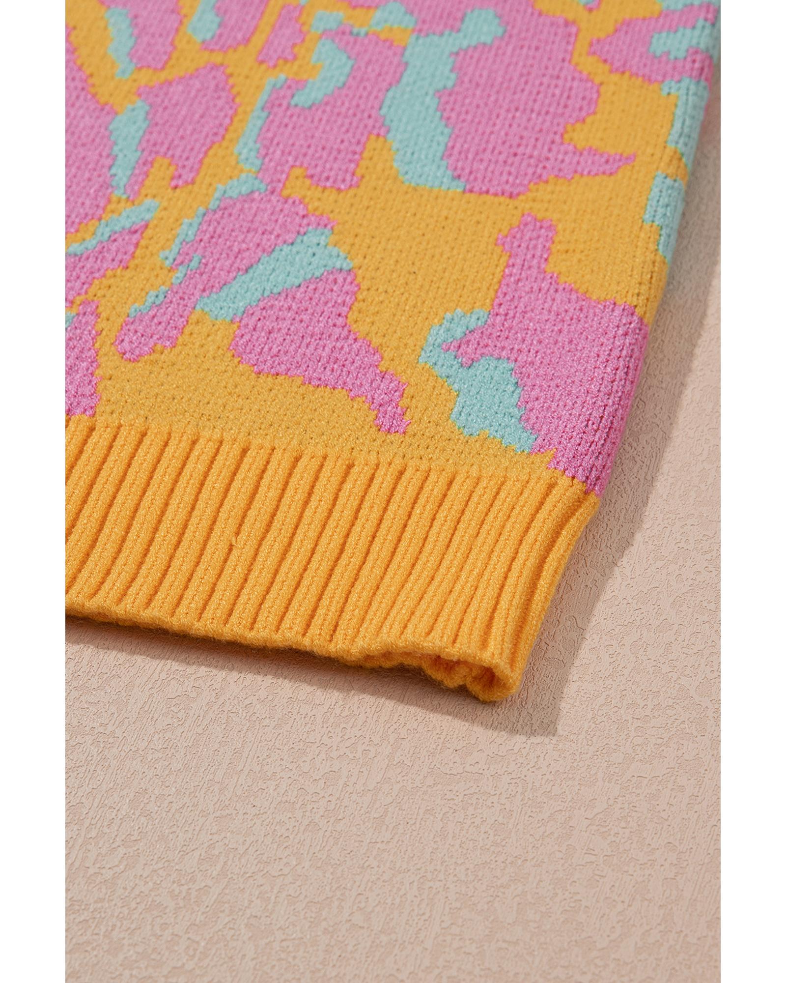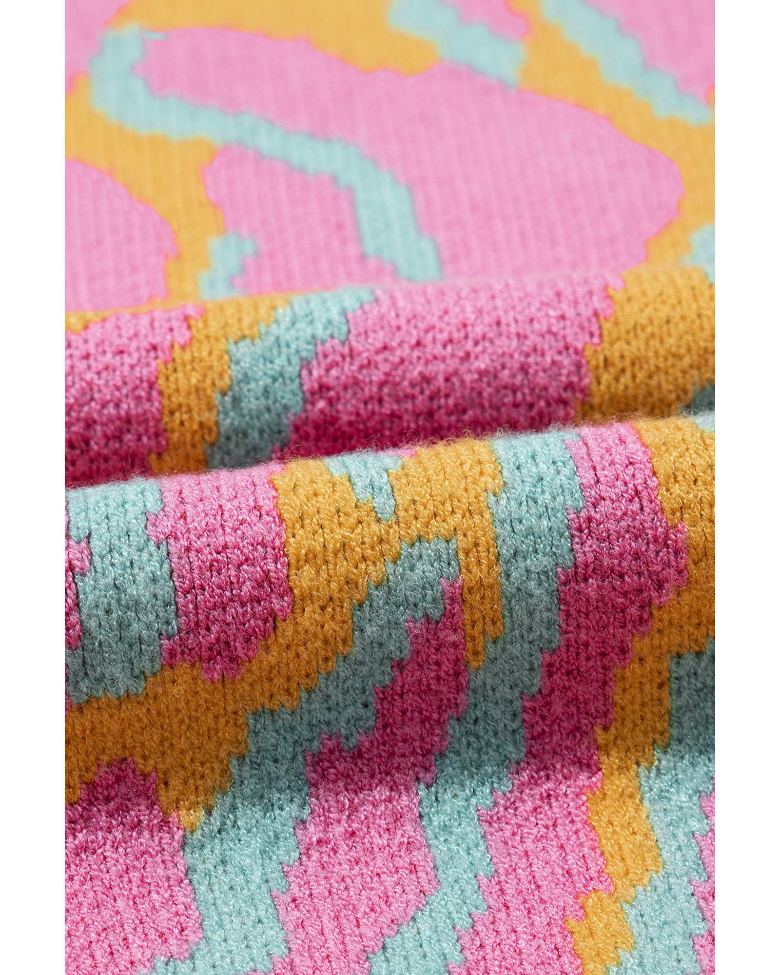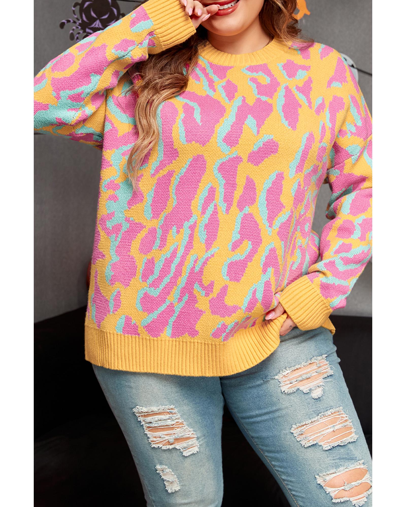 Bright Pink Plus Size Leopard Ribbed Trim Sweater – 4X