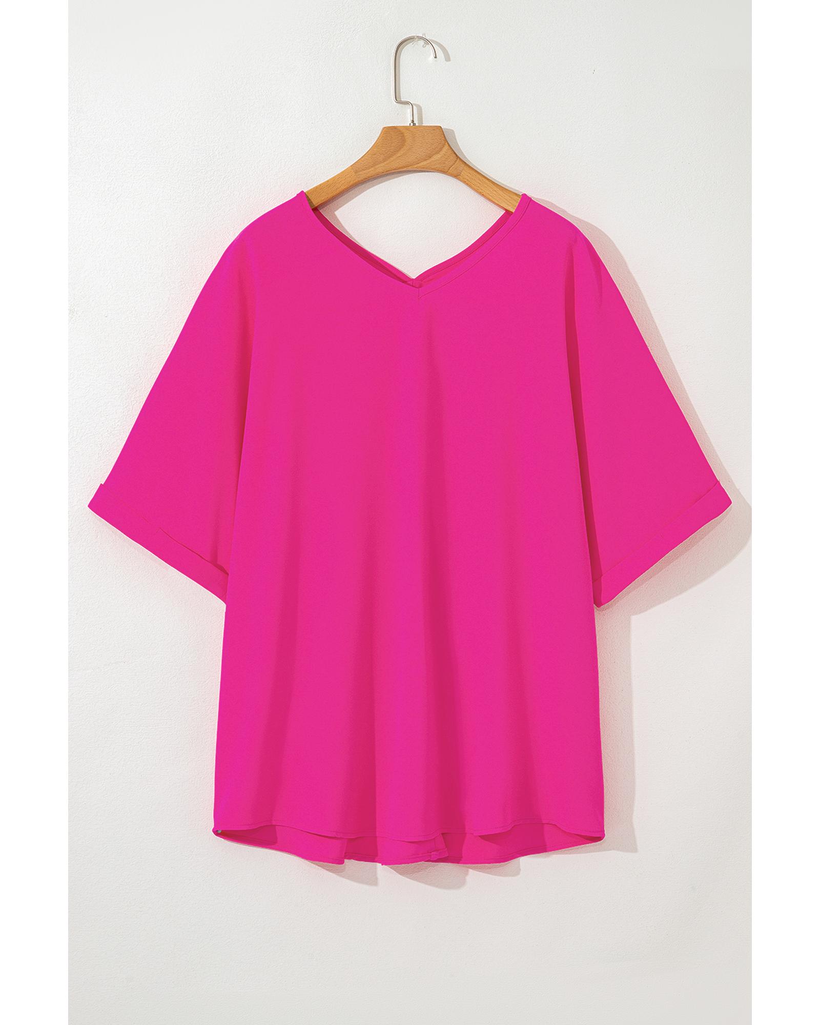 Bright Pink Seamed Back High Low Hem V Neck Cuffed Sleeve Plus Size Tee – 1X