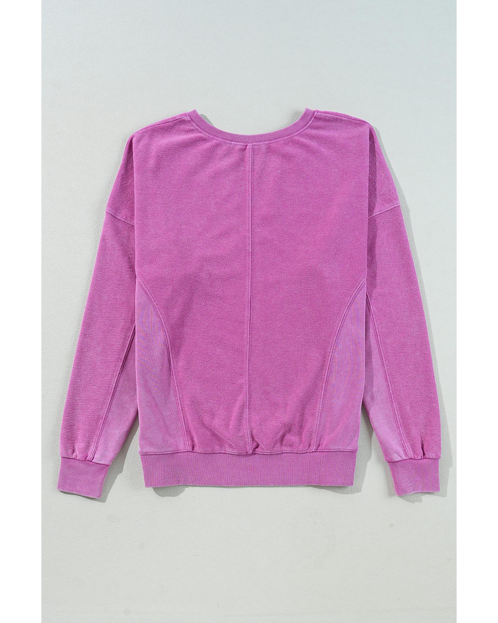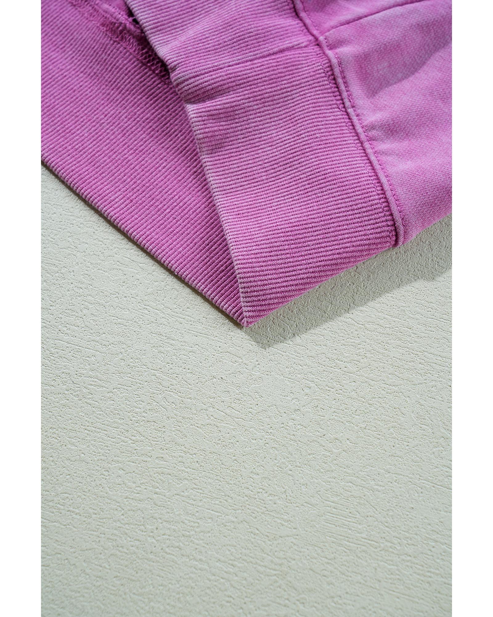 Bright Pink Solid Color Notched Neck Drop Shoulder Sweatshirt – M