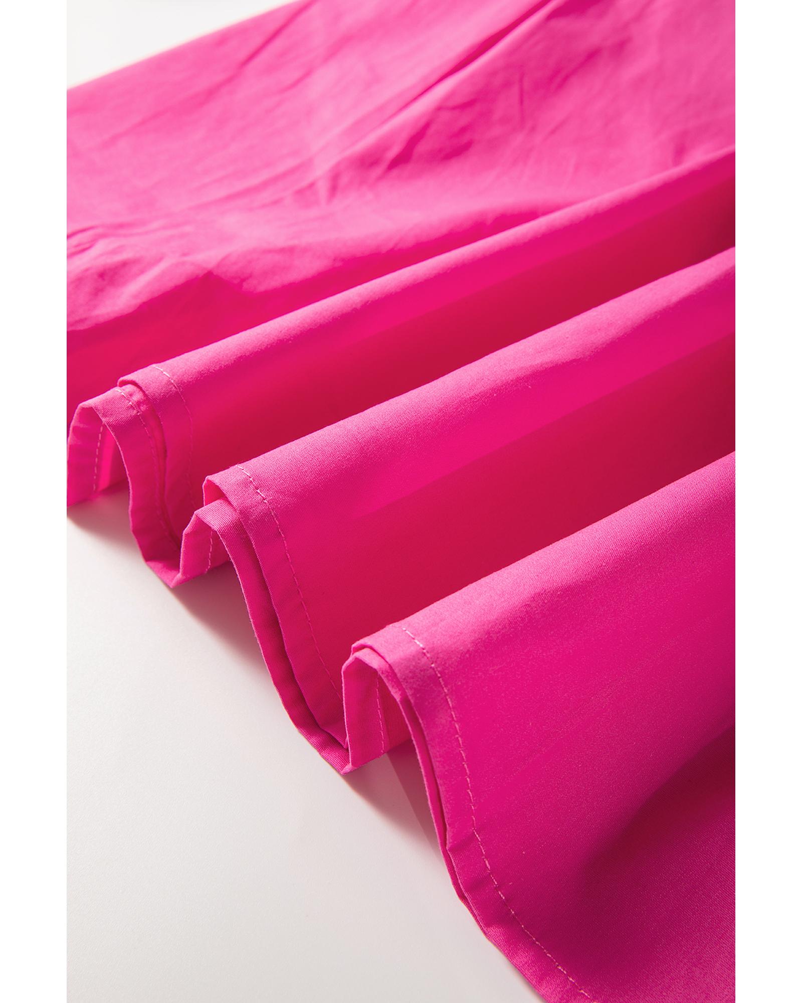 Bright Pink Solid Color Puff Sleeve Tie Front High Waist Mini Dress – XL