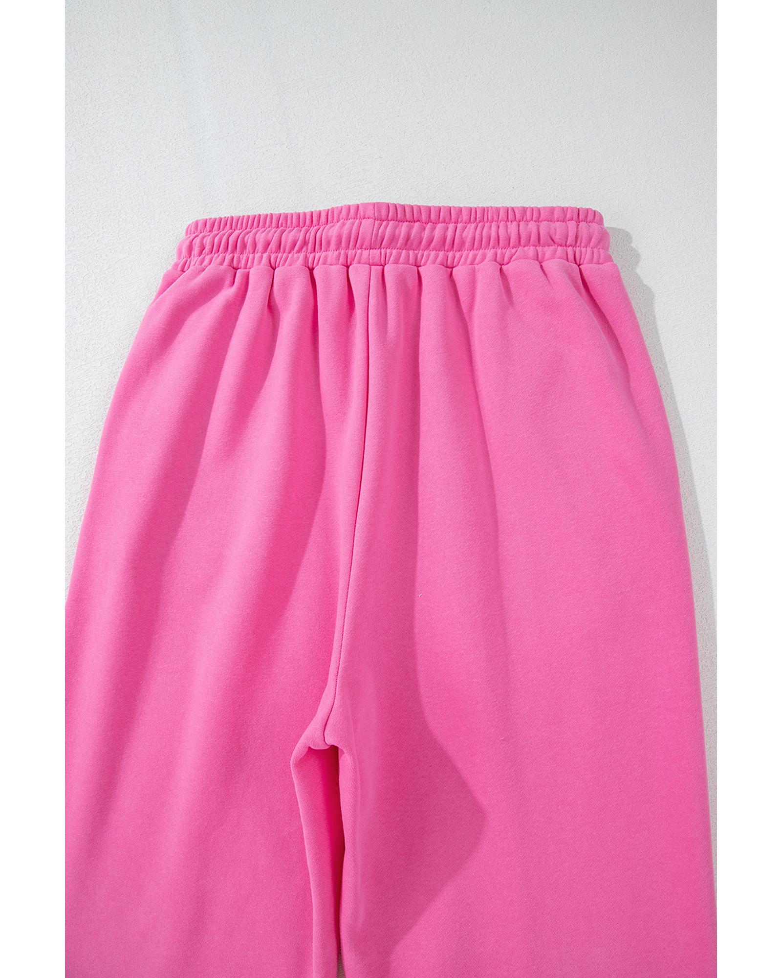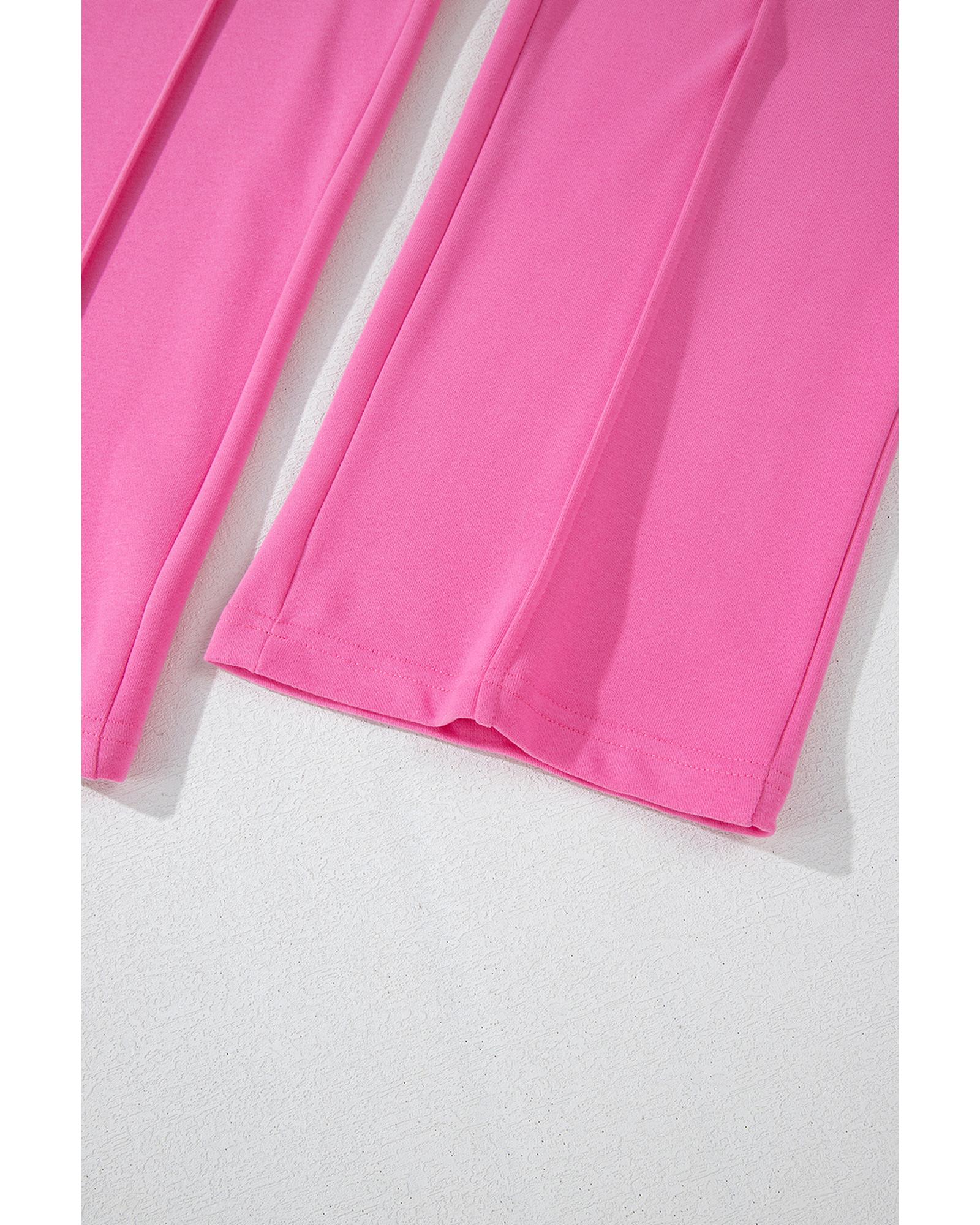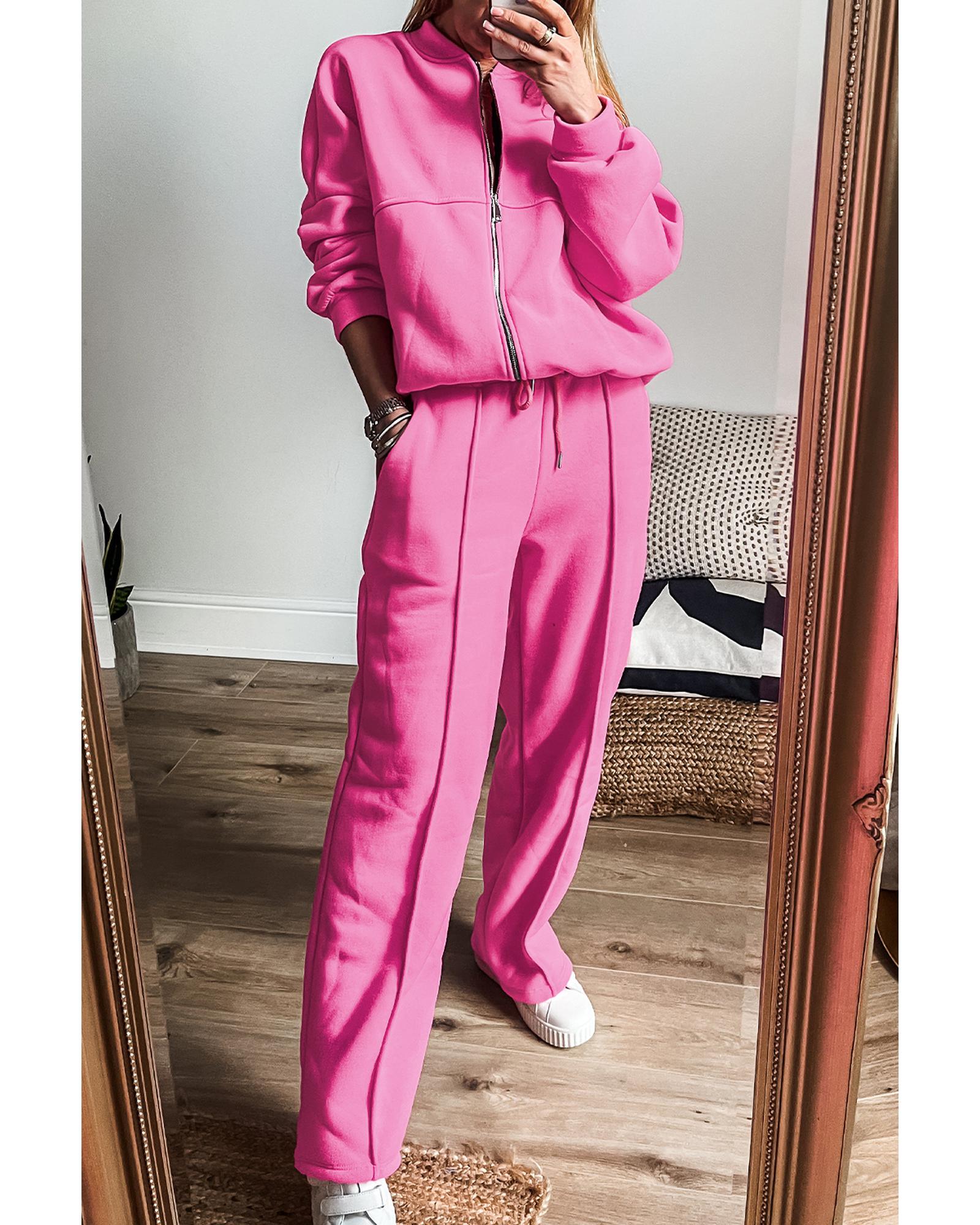 - Bright pink solid seamed zipper jacket and drawstring waist pants set