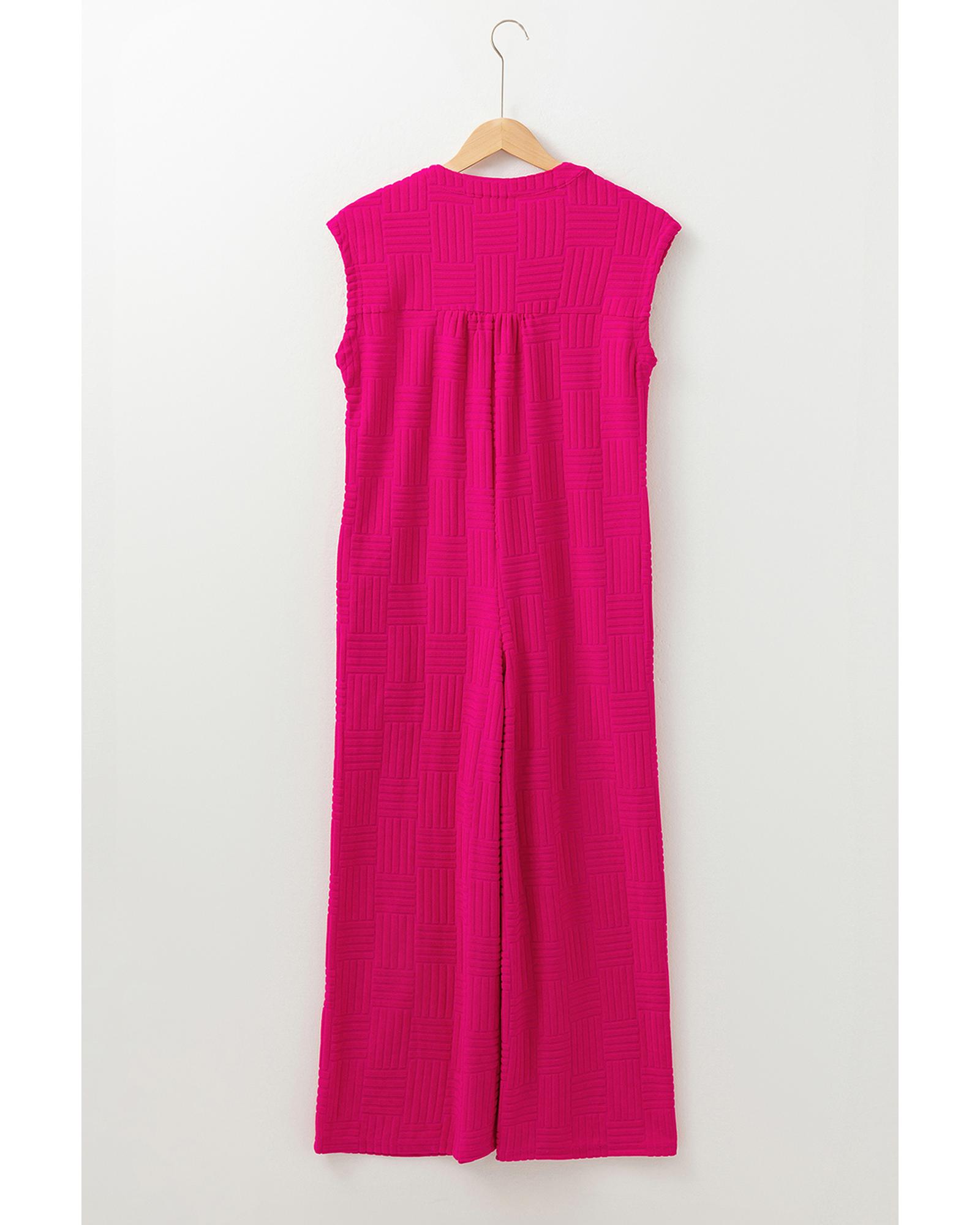 Bright Pink Terry Textured Sleeveless Button Front Wide Leg Jumpsuit – M