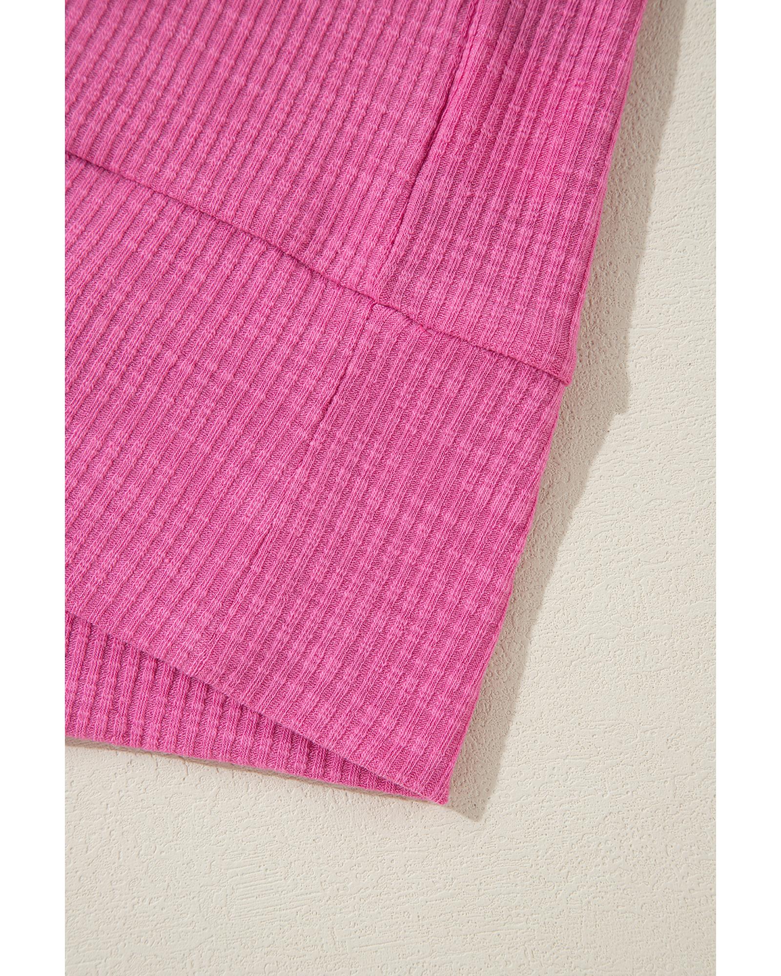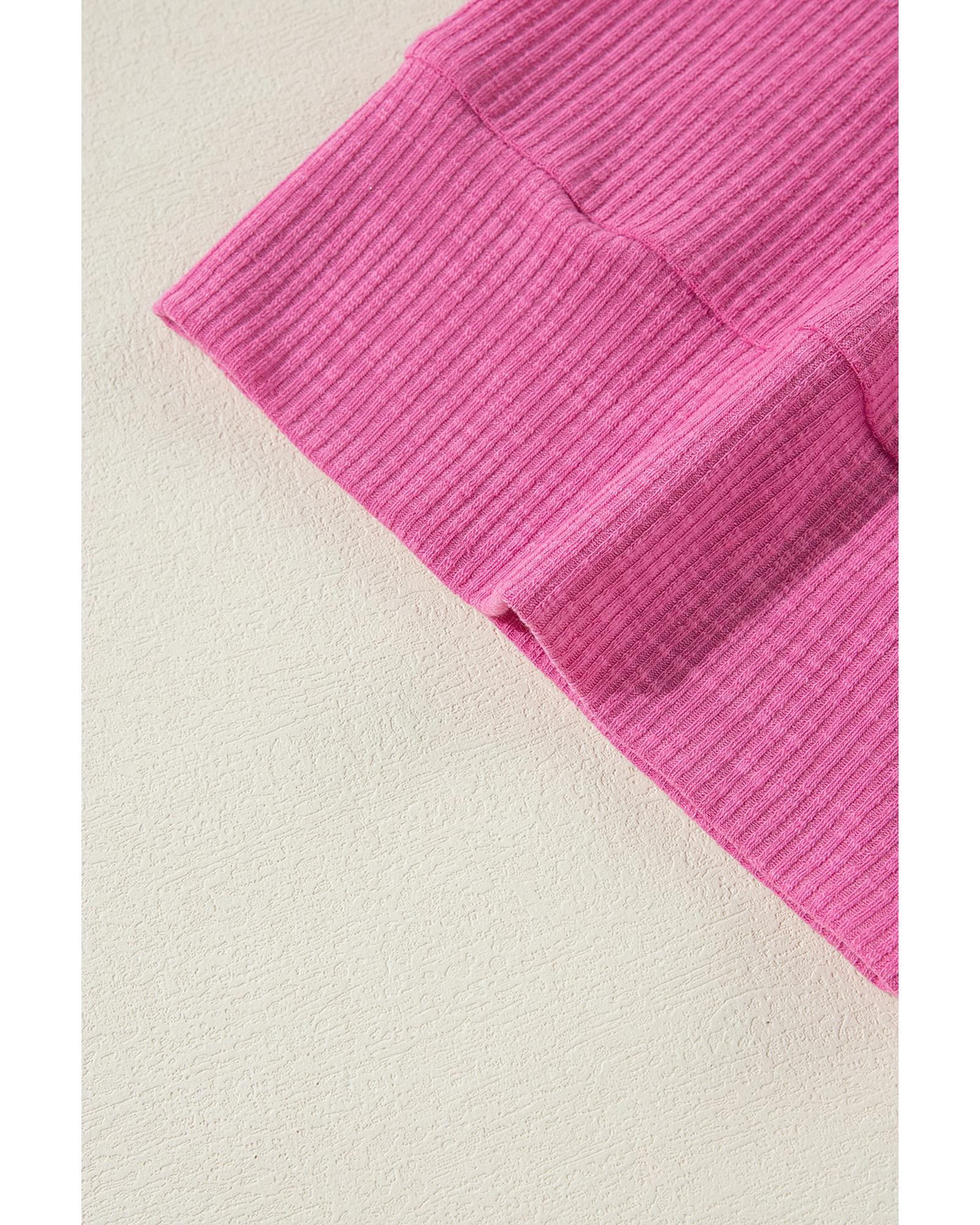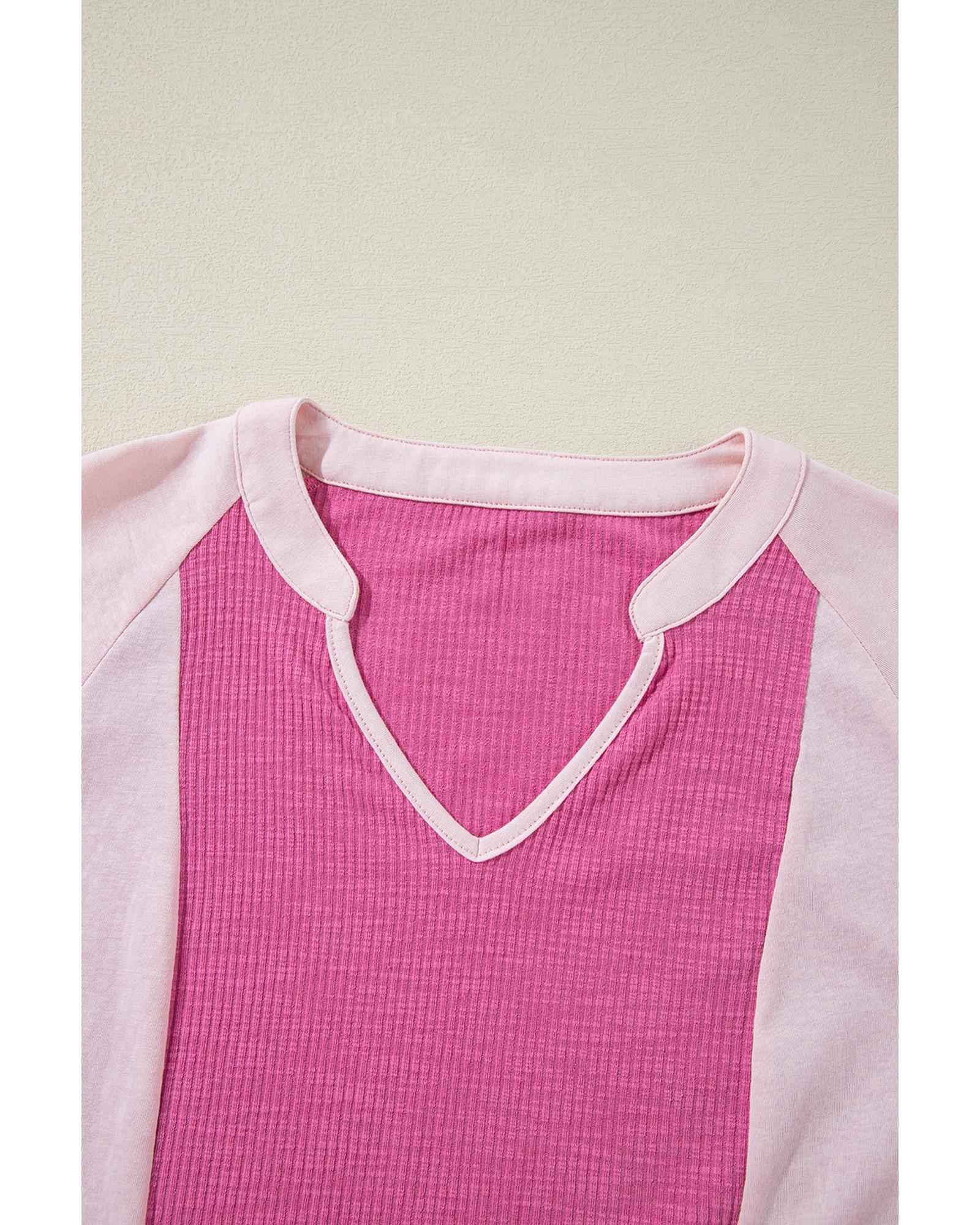 Bright Pink Textured Colorblock 3/4 Sleeve Oversize Top – L
