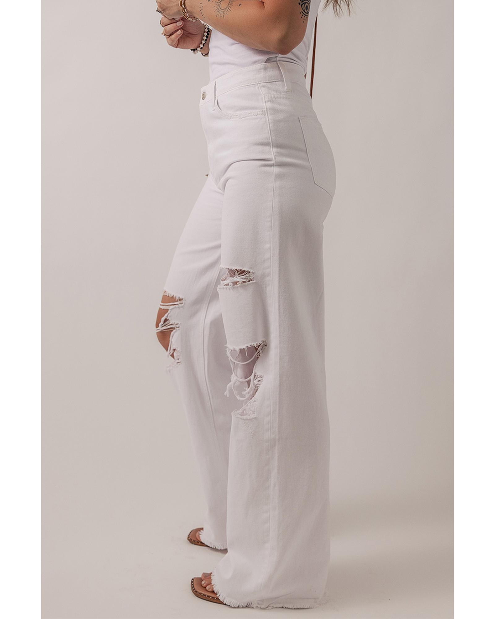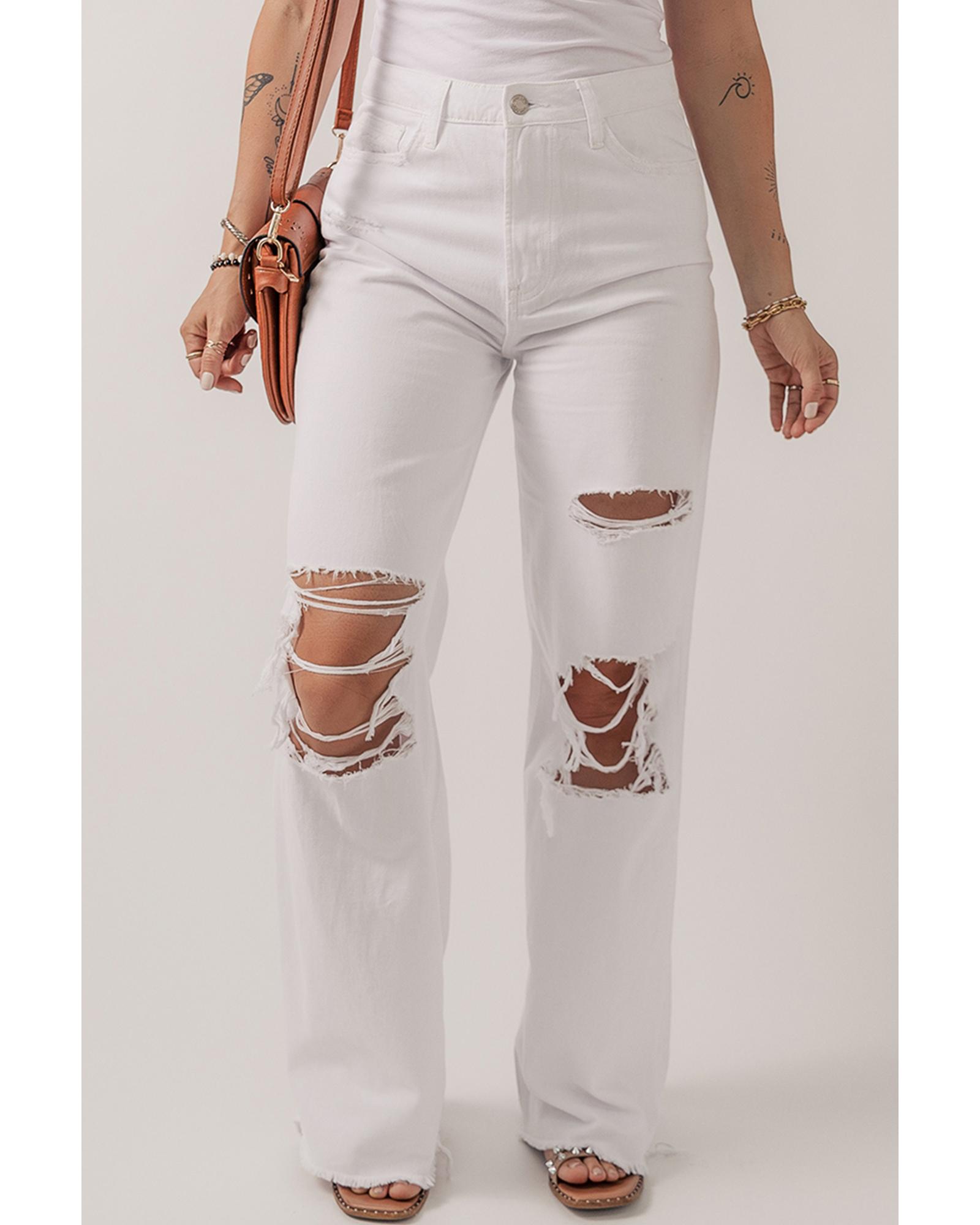 Bright White Heavy Distressed Straight Leg Jeans – 14 US