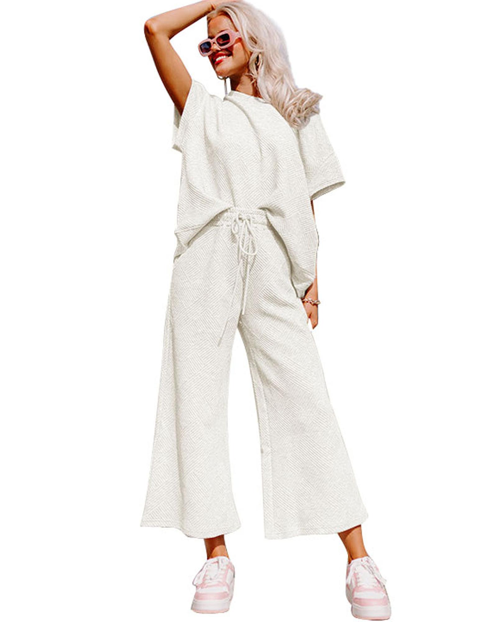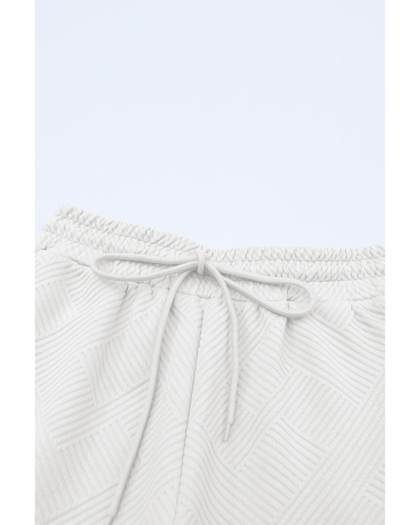 Bright White Textured Loose Fit T Shirt and Drawstring Pants Set – 2XL