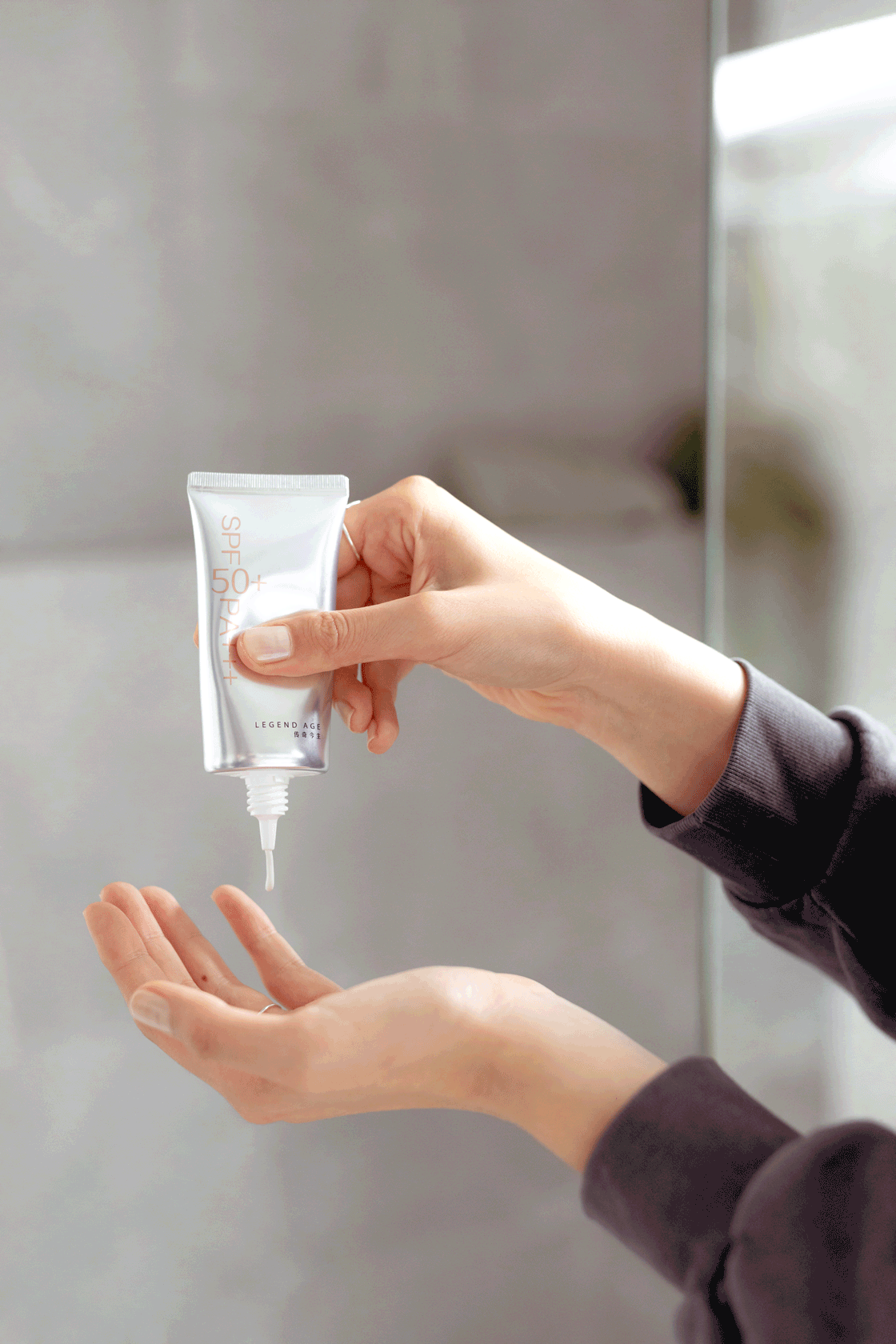 Use the ultraviolet sunscreen at the final step of skincare, take an appropriate amount and apply it to the skin exposed to the sun (face, neck, arms, hands, legs and back), evenly spread it gently.