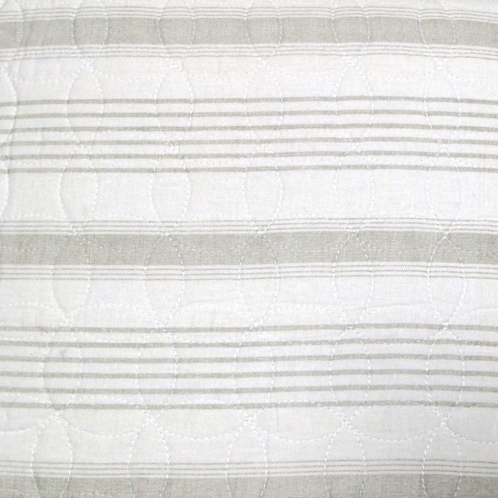 The Regatta Stone 100% Cotton Quilted Quilt Cover Set by Brighton Road is a lovely set that features a stylish print striped design and quilted circle link pattern in soft tones of Stone and White. It is made from quality 100% cotton fabric and pure cotton fill that is soft against your skin. Set is quality made with tailored edging on the pillowcases.